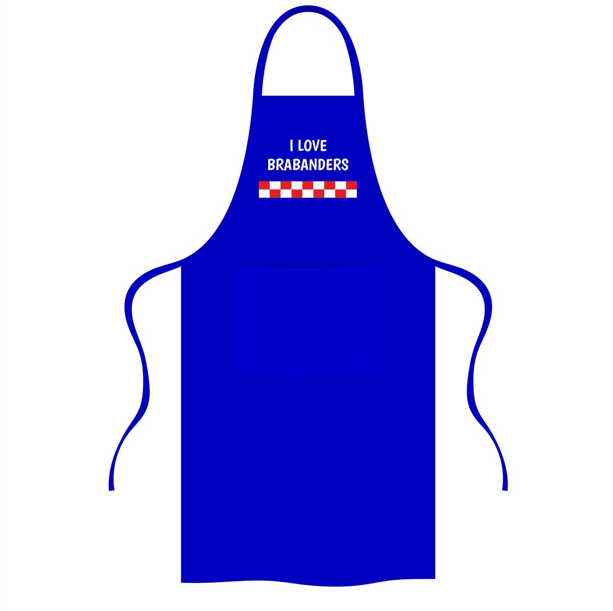 Deze schort met de tekst I Love Brabanders en een rood-wit geblokt vlak in de kleuren van Brabant is gemaakt voor iedereen die zijn liefde voor Brabanders en Brabant met trots wil laten zien. Brabanders staan bekend om hun gezelligheid, humor en warme karakter, en deze schort straalt die Brabantse trots volledig uit. Het herkenbare rood-witte Brabantse patroon in combinatie met de tekst I Love Brabanders maakt deze schort direct opvallend en geliefd bij Brabanders en iedereen die een warm hart heeft voor Brabant.