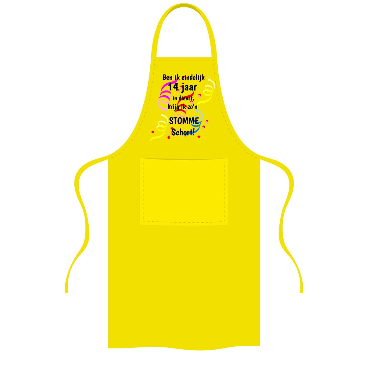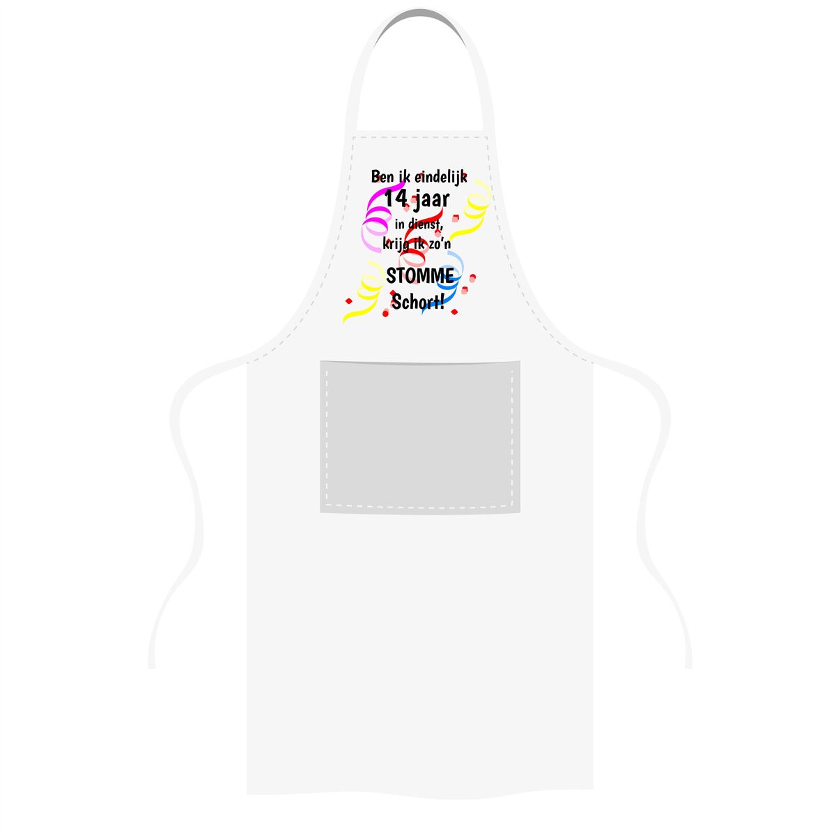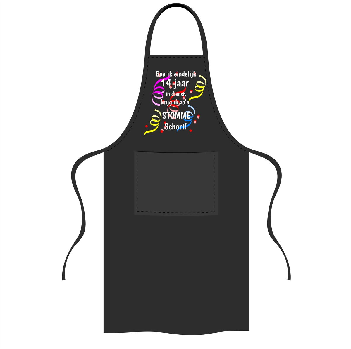 Ben je op zoek naar een grappig schort voor een werkjubileum van 14 jaar, een origineel jubileum cadeau met tekst of een humoristisch cadeau voor een collega die al jaren in dienst is, dan is dit schort precies wat je zoekt. Door de duidelijke en herkenbare tekst is het perfect vindbaar en aantrekkelijk voor iedereen die iets unieks wil geven. Met dit schort geef je geen standaard cadeau, maar een glimlach, een herinnering en een verhaal in één.