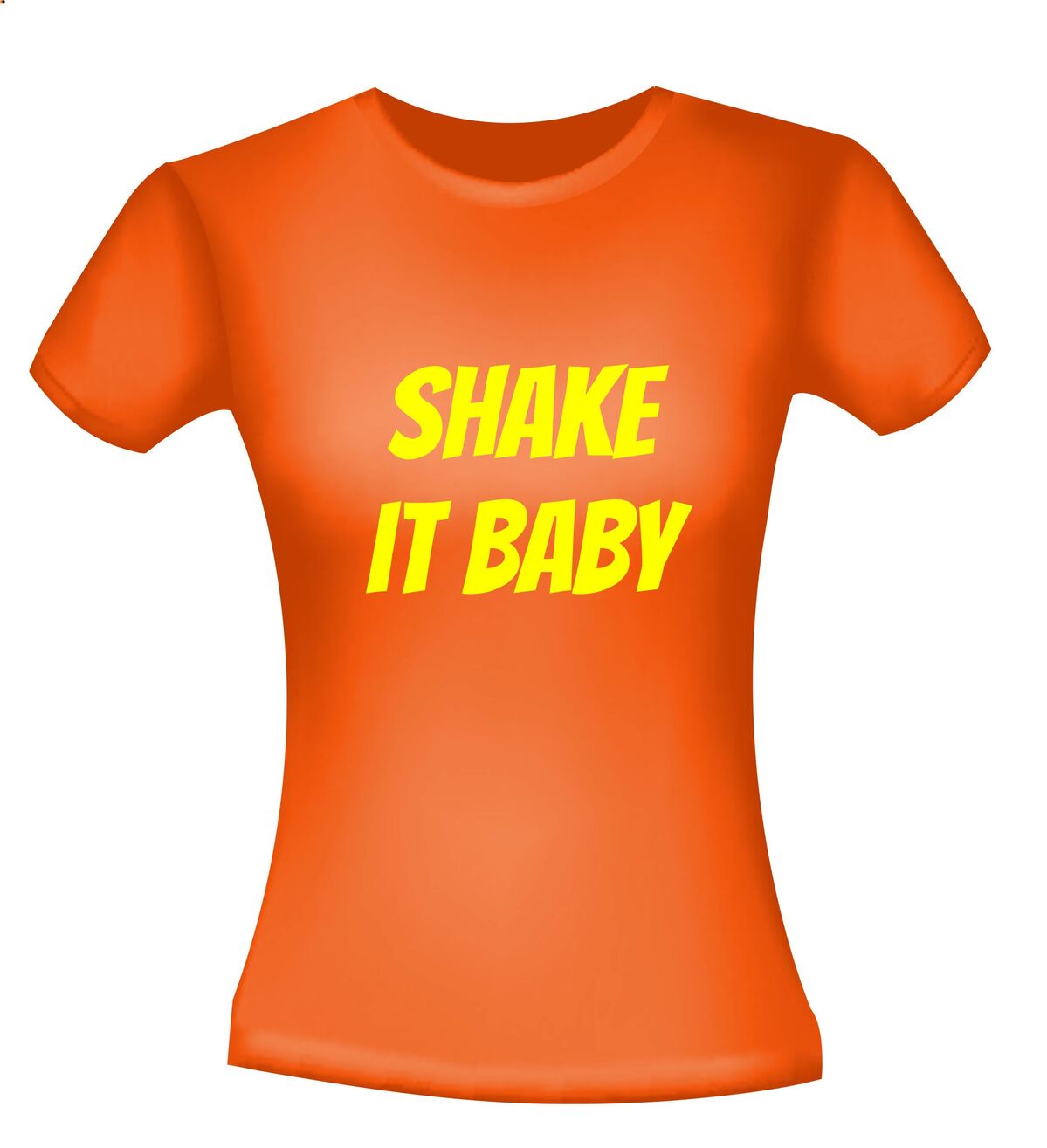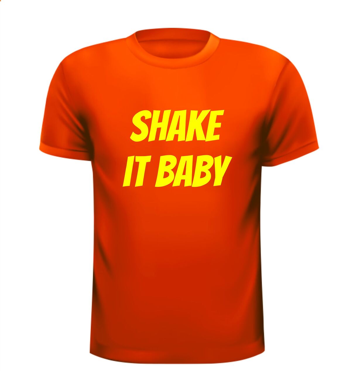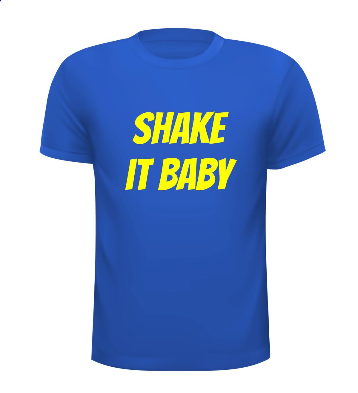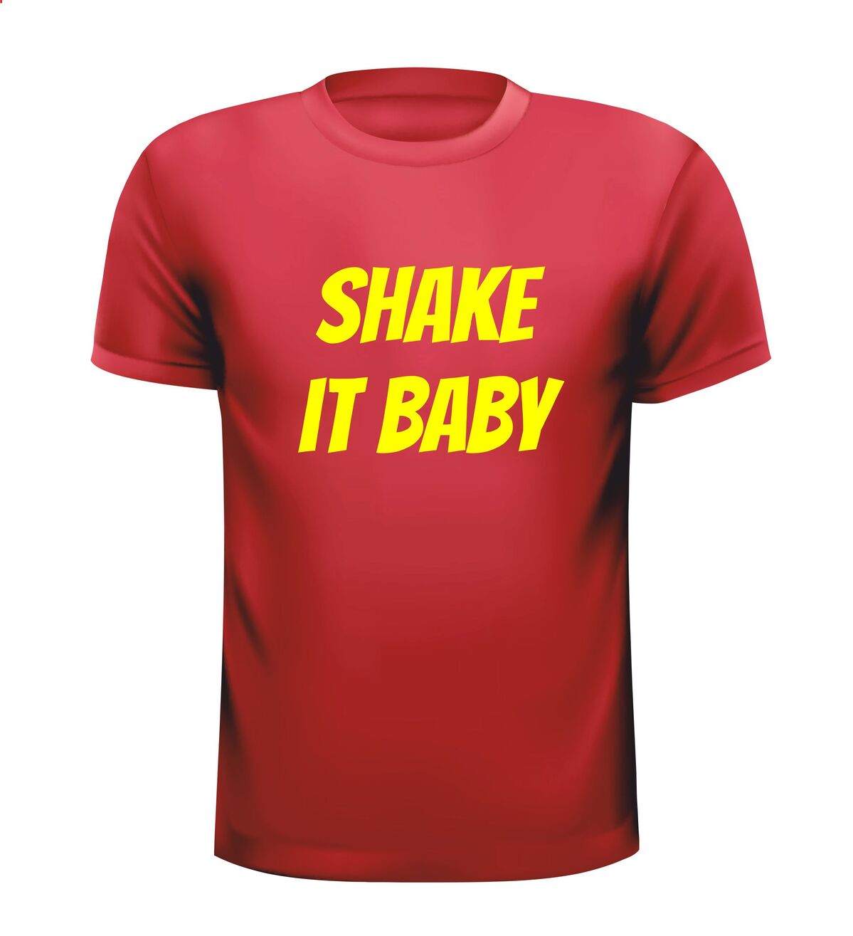 Een leuk T-shirt voorzien van de tekst shake it baby.