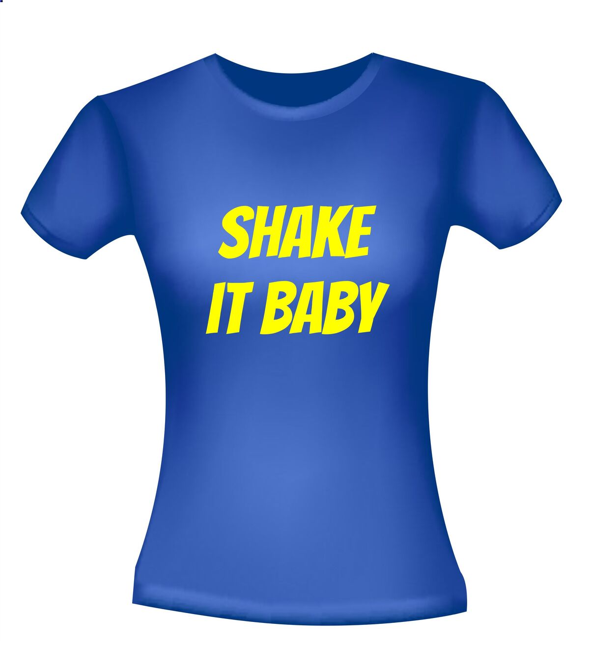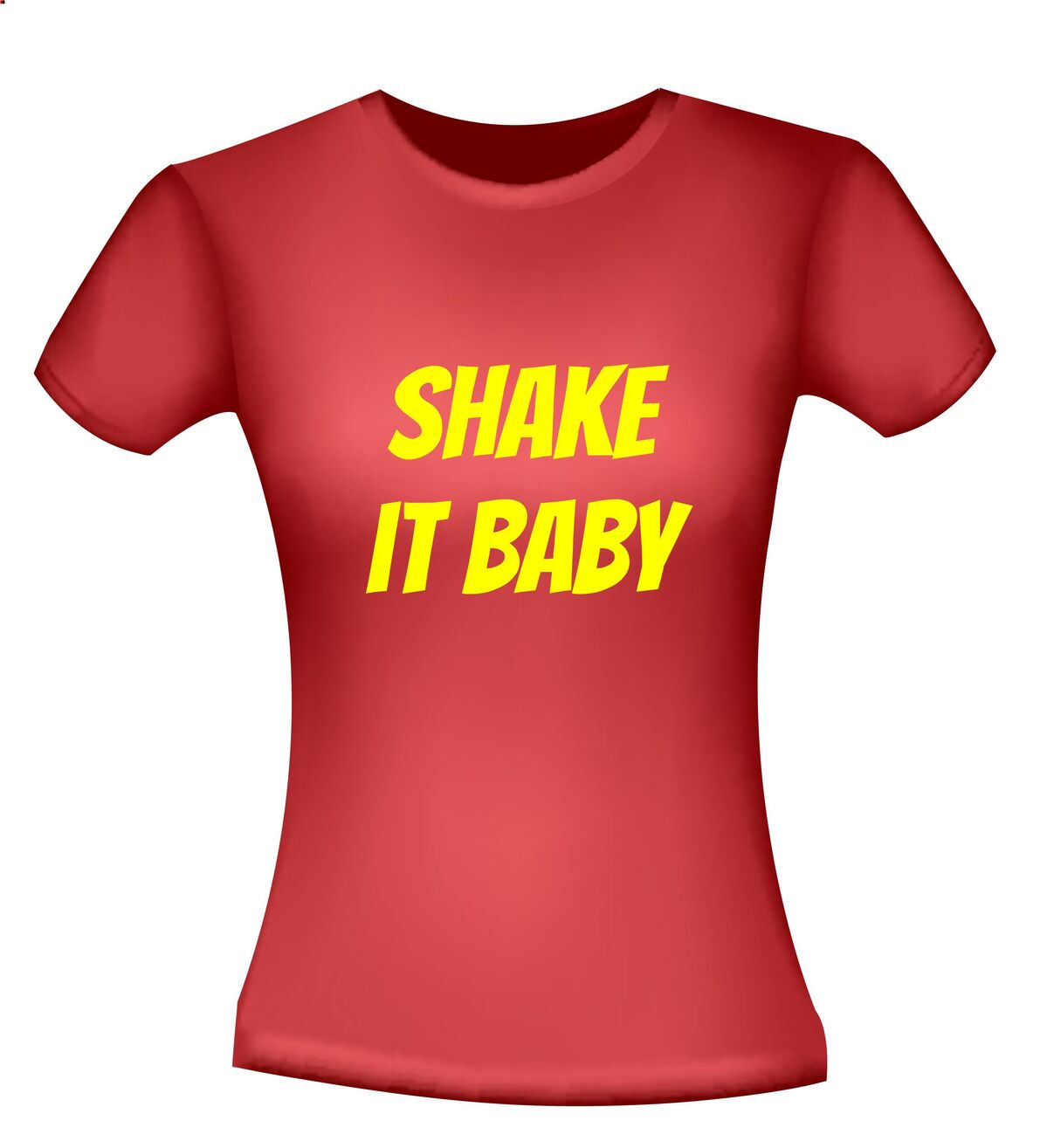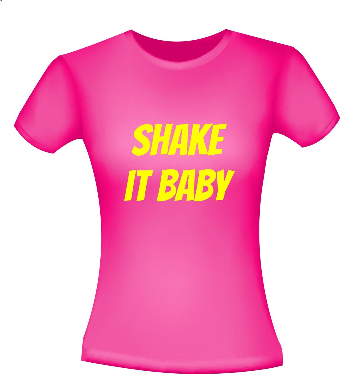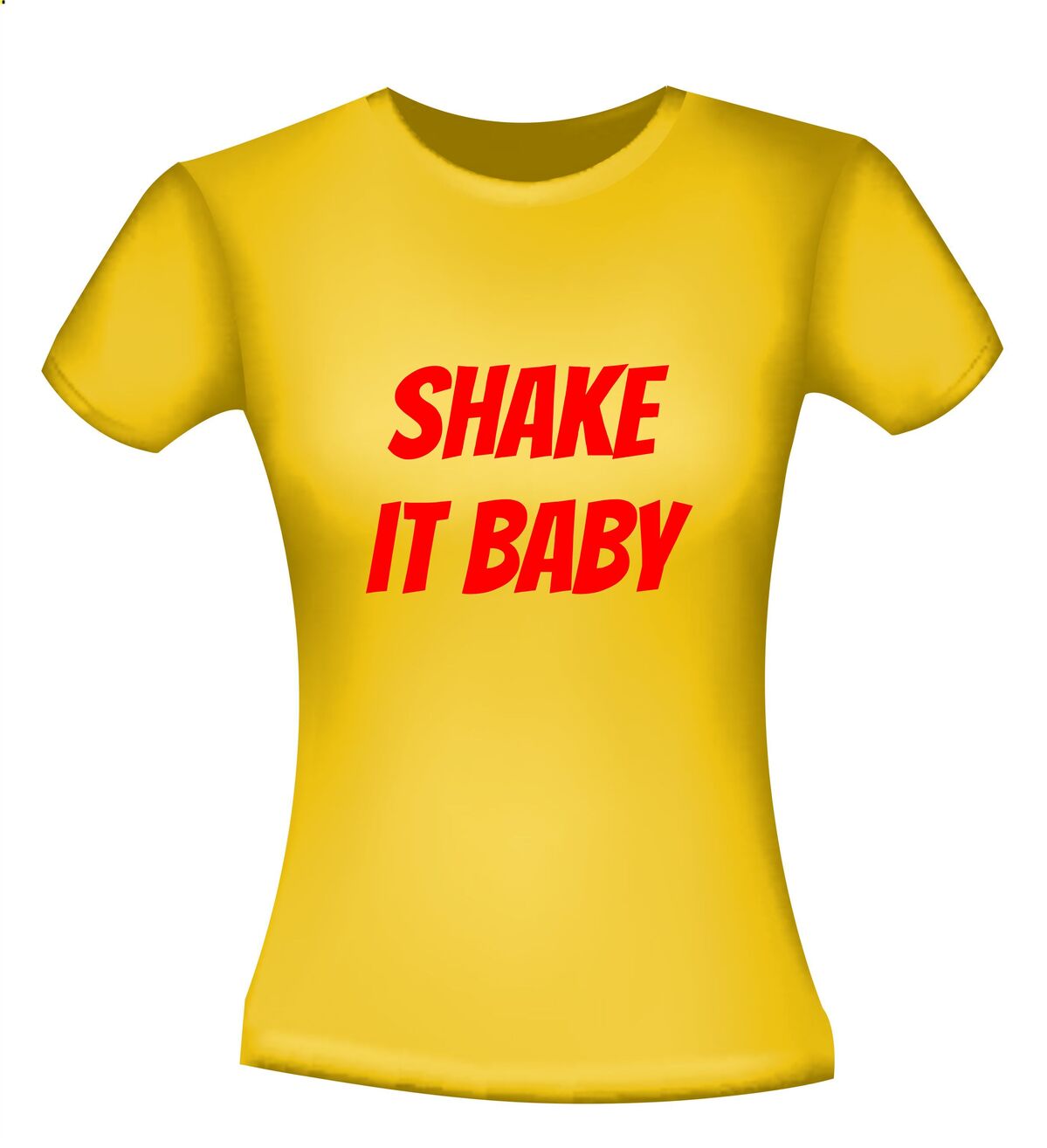 Een leuk T-shirt voorzien van de tekst shake it baby.
