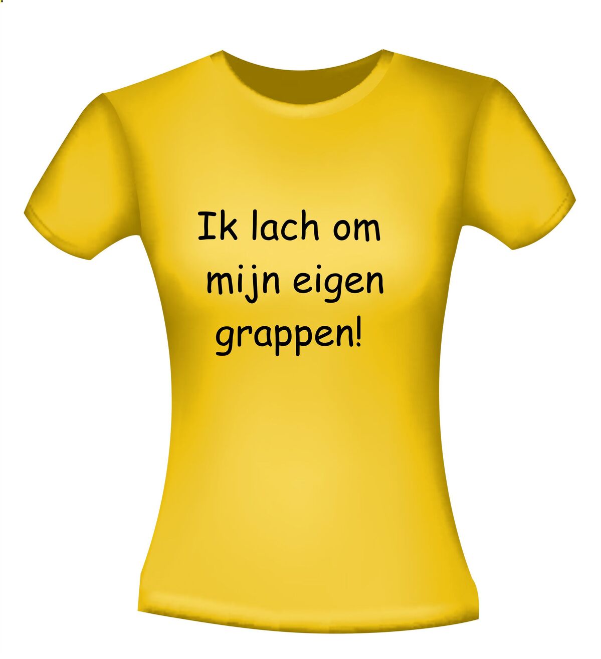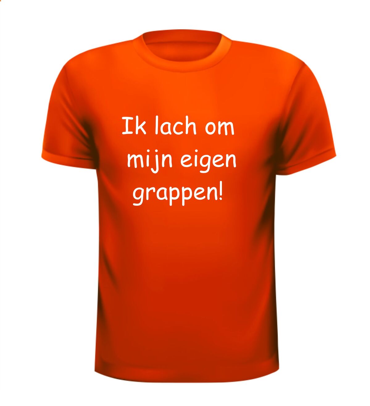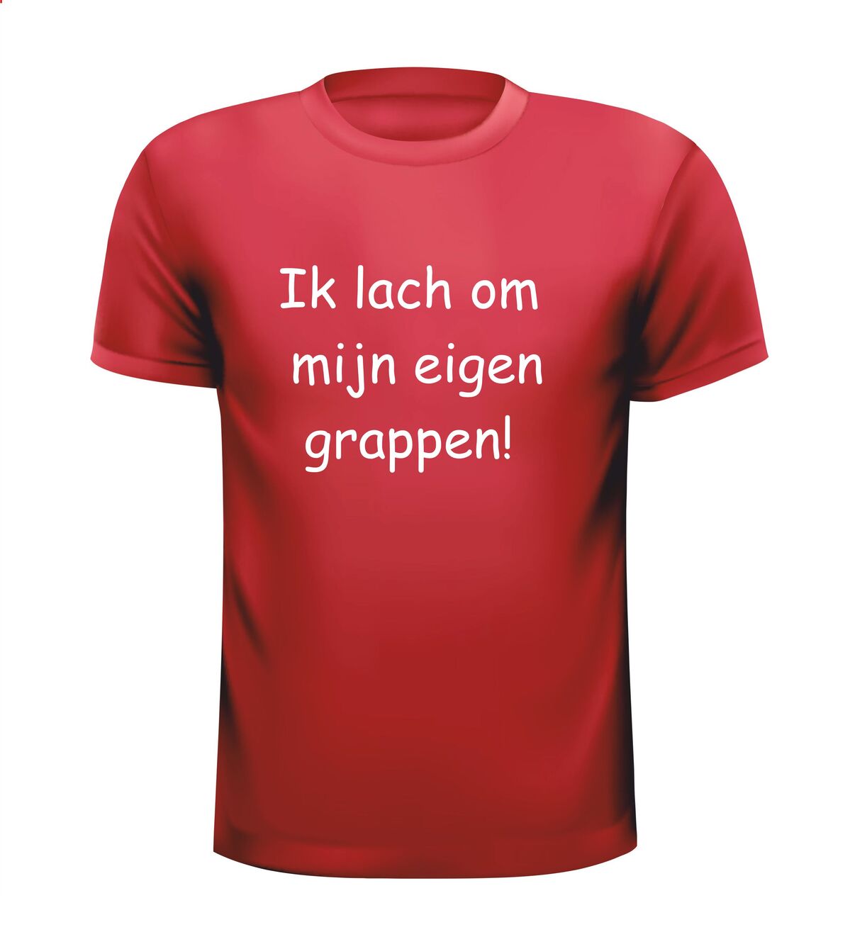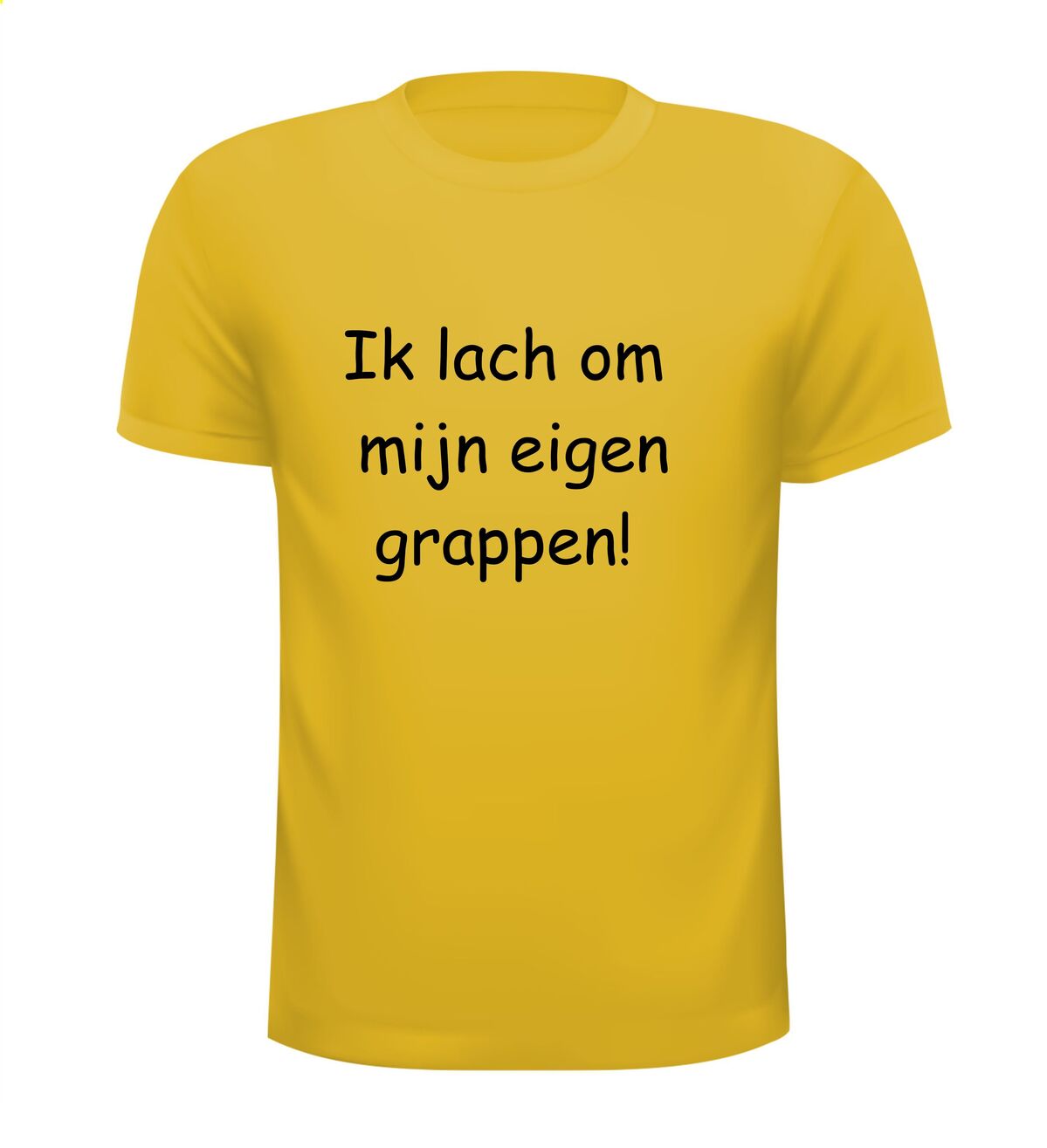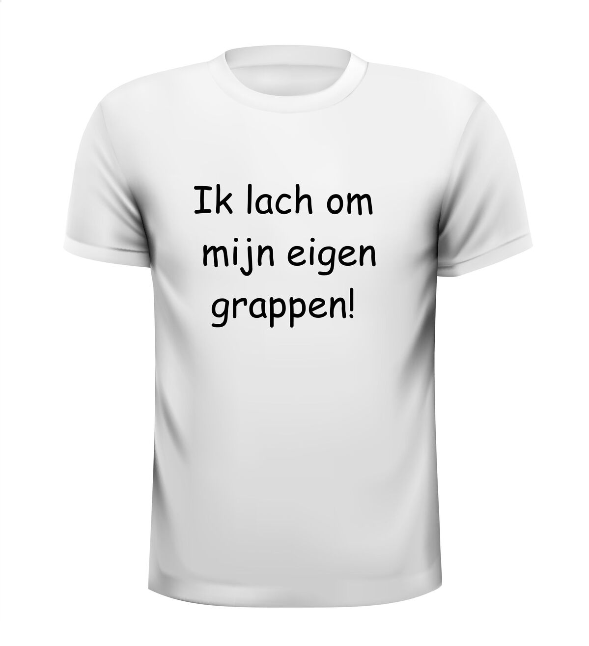 Een leuk T-shirt voor iemand die net zo hard mee lacht om zijn eigen grappen als dit van een ander. Geef hem of haar dit T-shirt cadeau!