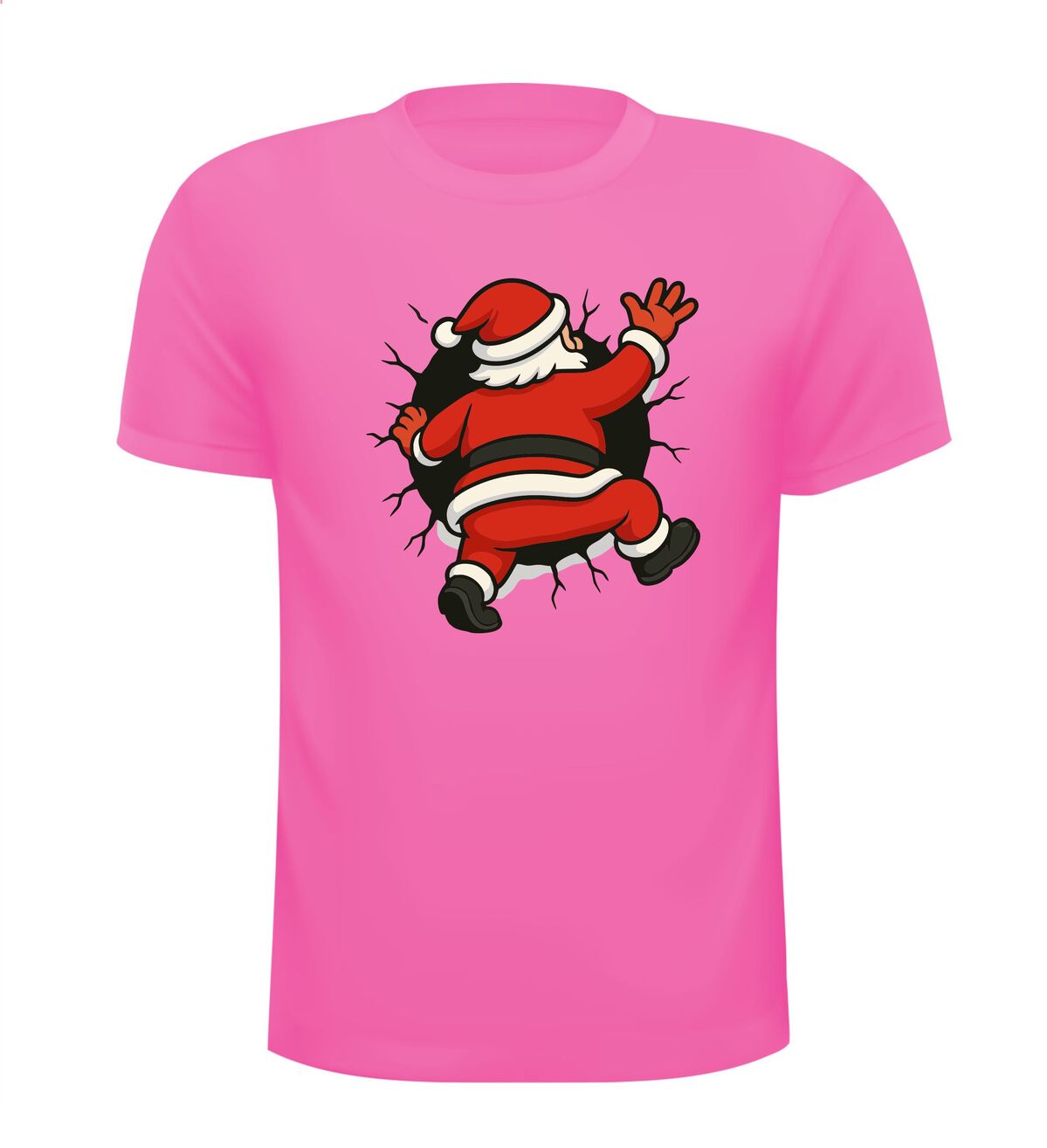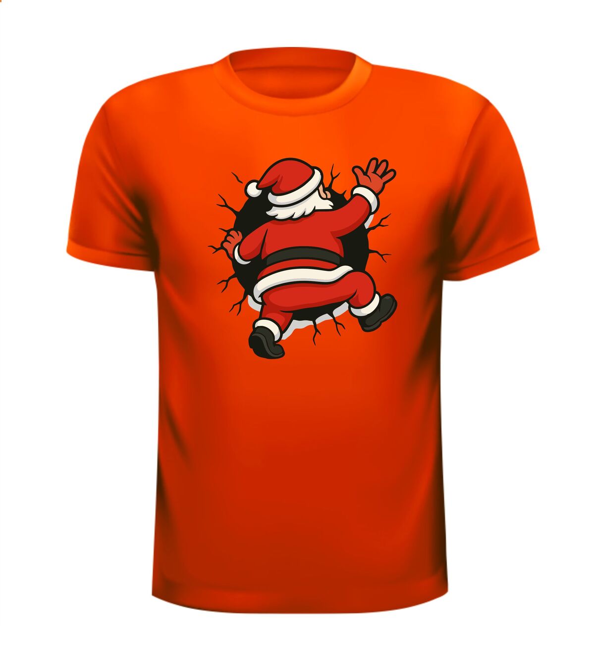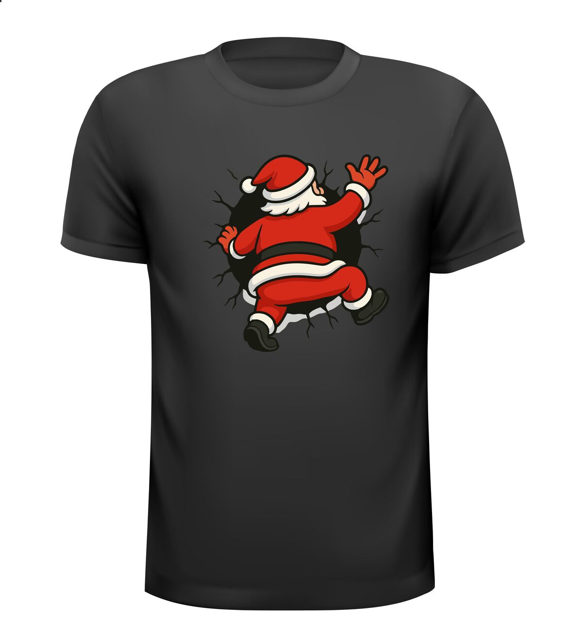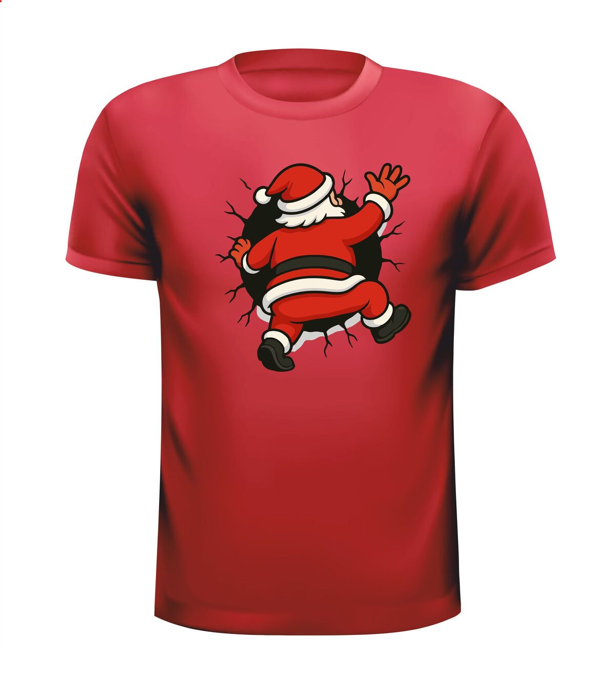 Shirts kerstman kruipt in t-shirt! Breng humor in de feestdagen met dit opvallende kerstshirt. De cartoon-kerstman die vast lijkt te zitten in je t-shirt zorgt direct voor een glimlach en trekt gegarandeerd de aandacht. Het speelse ontwerp met gescheurde randen geeft een grappig 3D-effect, alsof de kerstman er echt doorheen kruipt. Perfect voor kerstborrels, foute kersttruien-dagen of gewoon om te laten zien dat jij kerst niet té serieus neemt.
