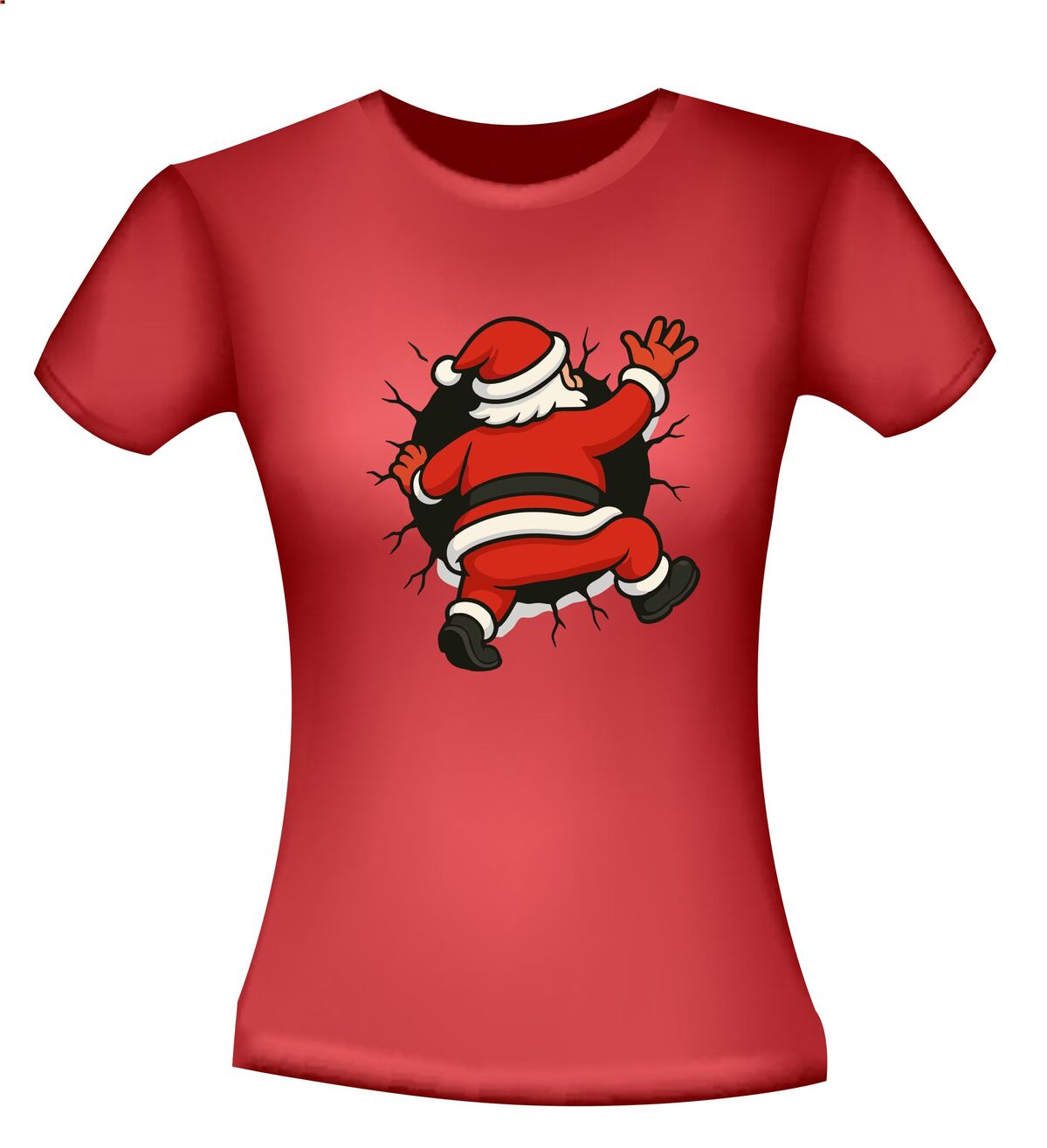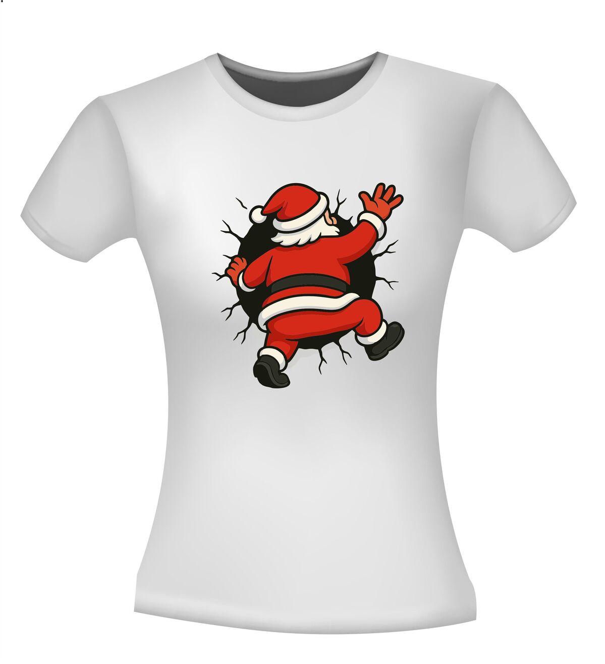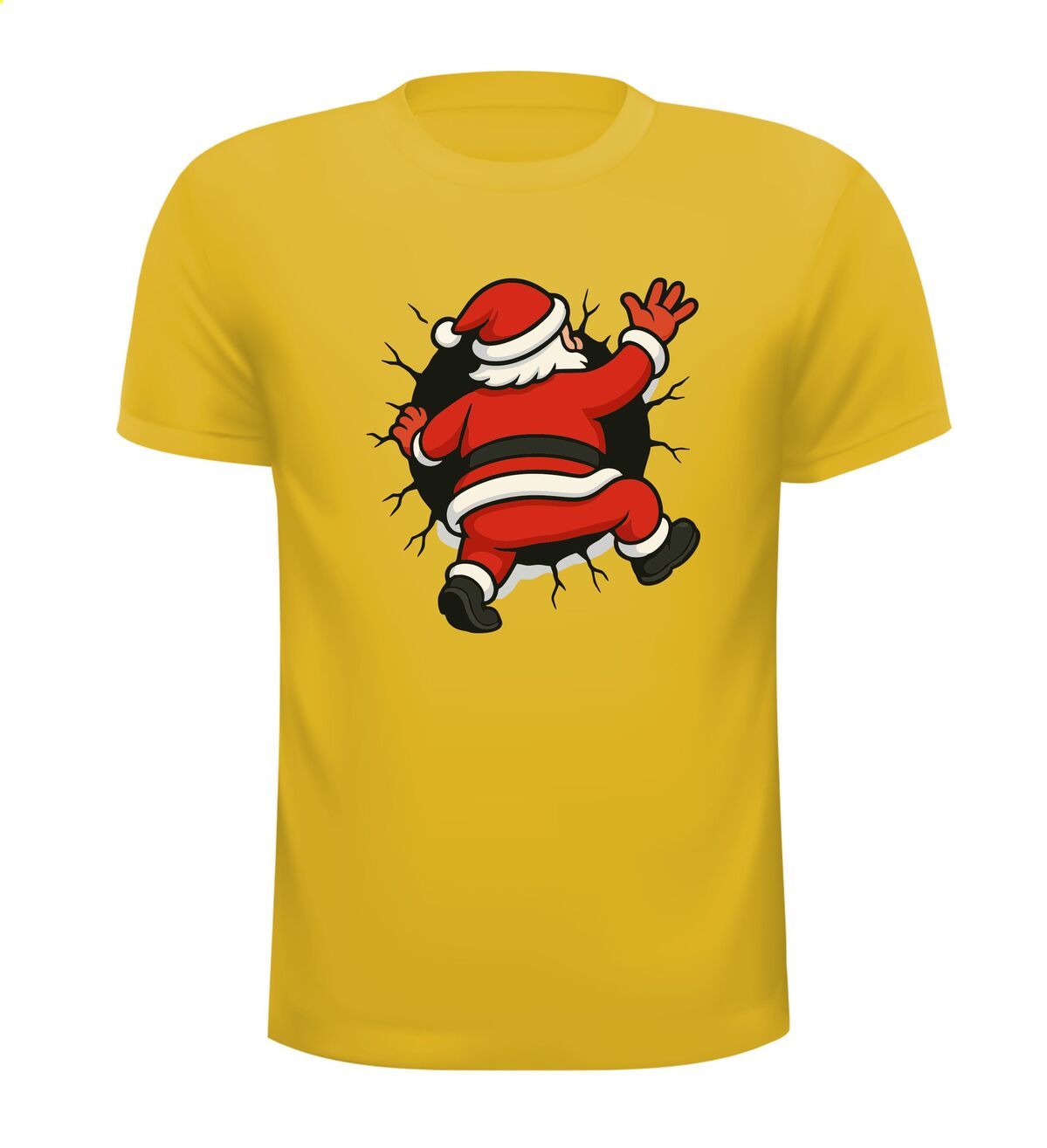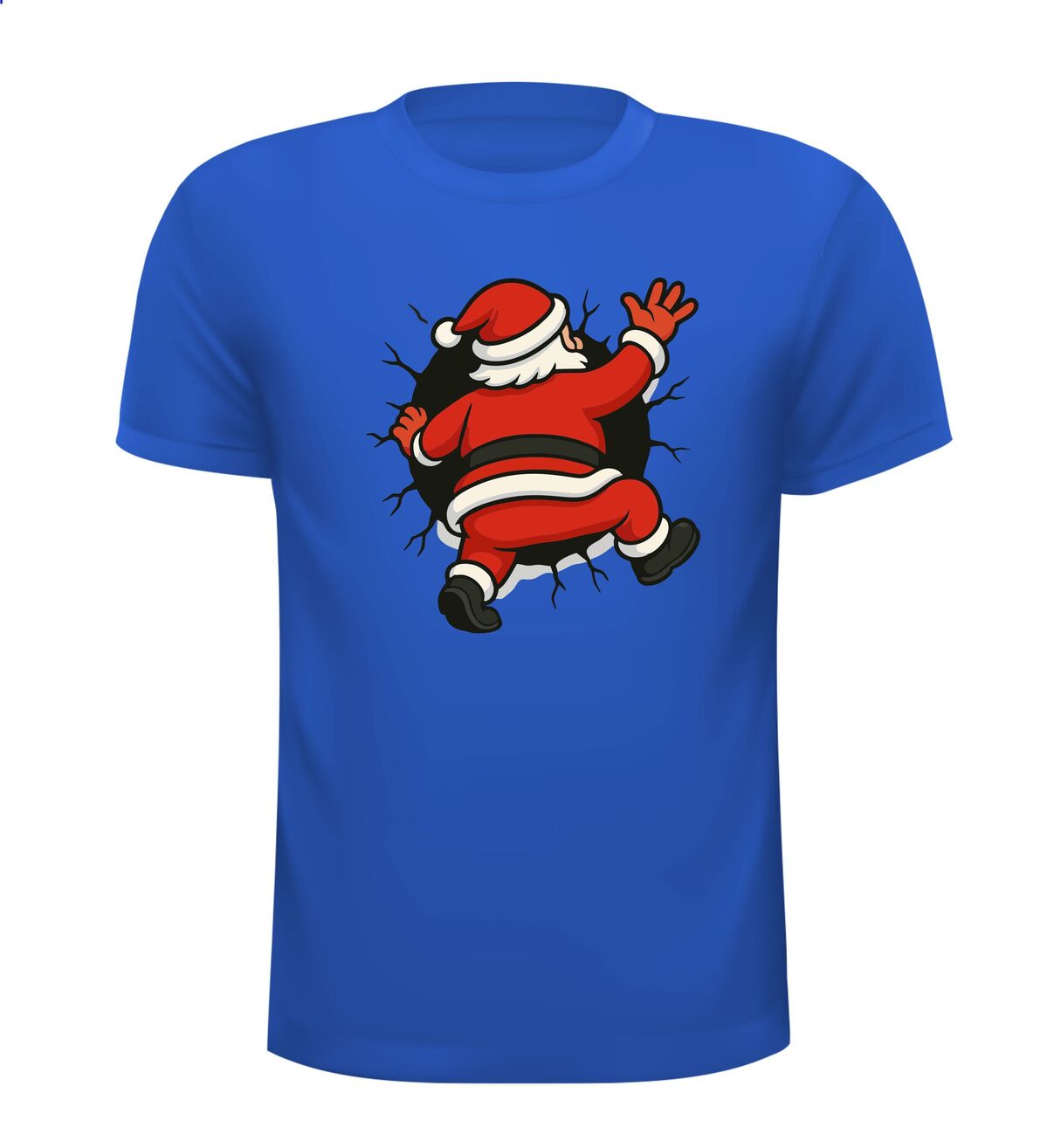 Shirts kerstman kruipt in t-shirt! Breng humor in de feestdagen met dit opvallende kerstshirt. De cartoon-kerstman die vast lijkt te zitten in je t-shirt zorgt direct voor een glimlach en trekt gegarandeerd de aandacht. Het speelse ontwerp met gescheurde randen geeft een grappig 3D-effect, alsof de kerstman er echt doorheen kruipt. Perfect voor kerstborrels, foute kersttruien-dagen of gewoon om te laten zien dat jij kerst niet té serieus neemt.