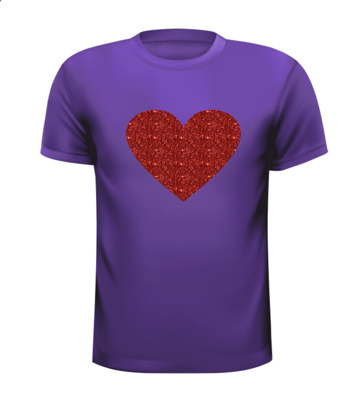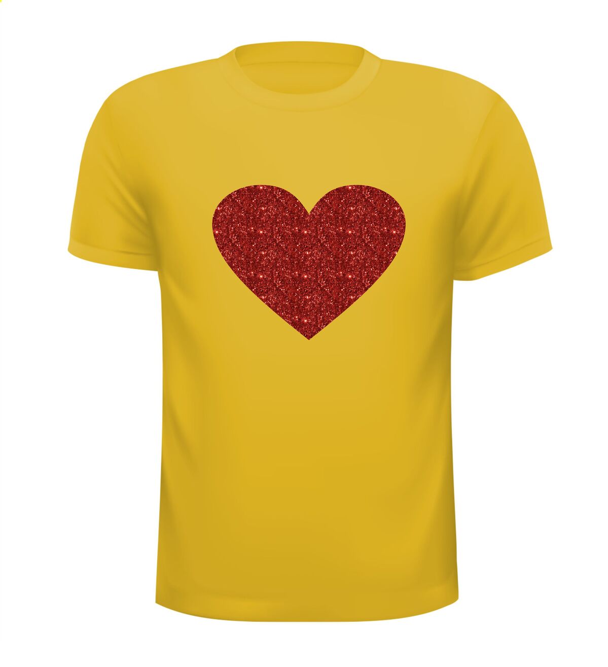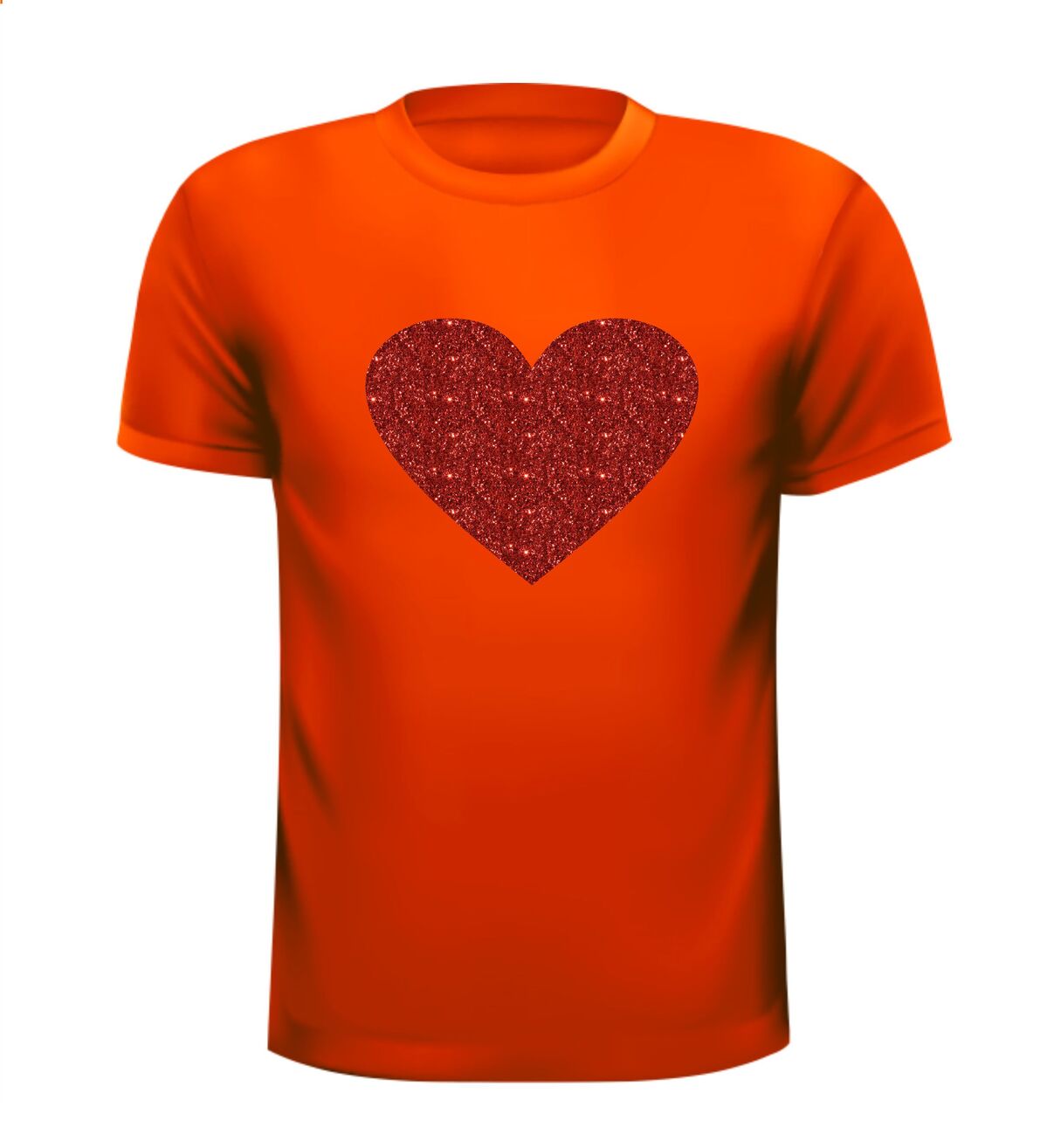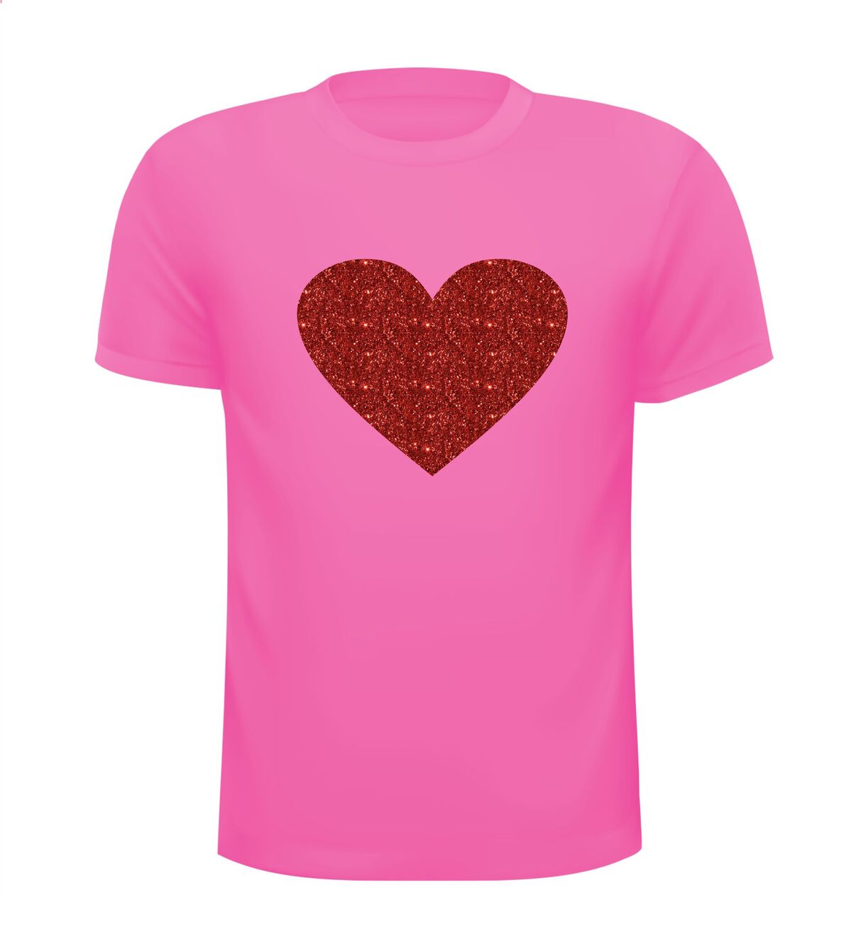 Dit shirt is één van onze meest gewilde items—en dat is niet voor niets. Voeg het Glitter Rood Hart T-Shirt vandaag nog toe aan je winkelmandje en shine everywhere you go!