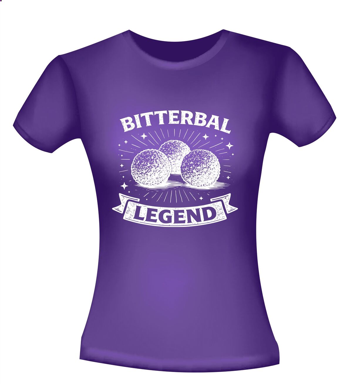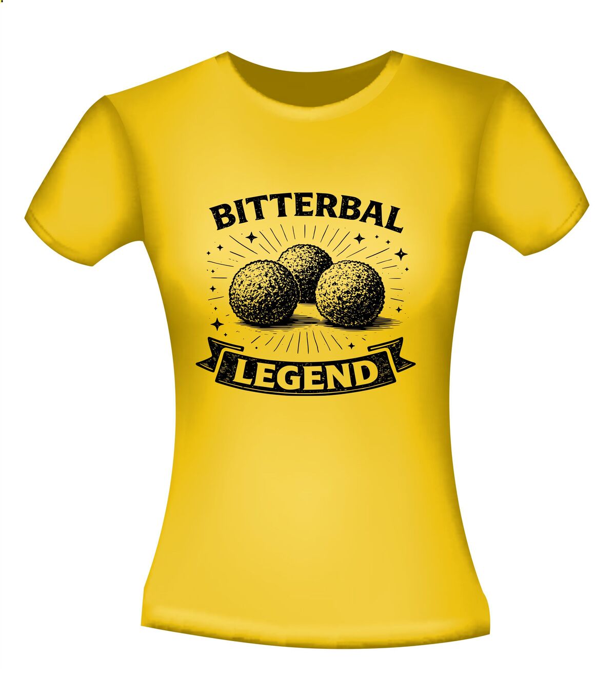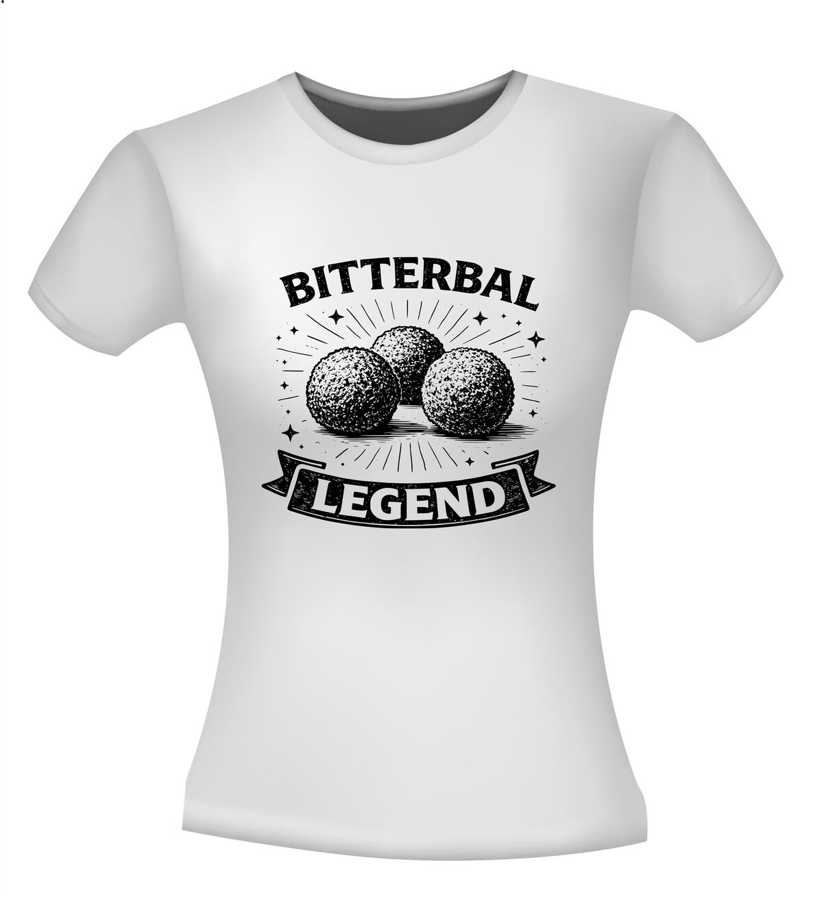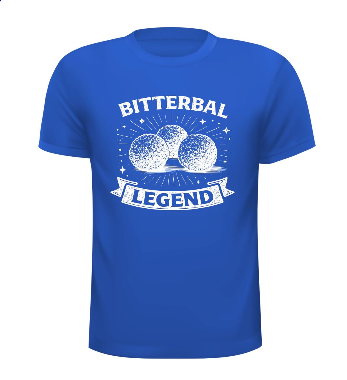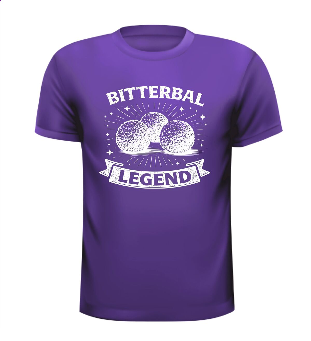 Een supergaaf vintage look t-shirt met de opdruk 'Bitterbal legend' Voor hem of haar die verslaafd is aan het bruine fruit de bitterbal.