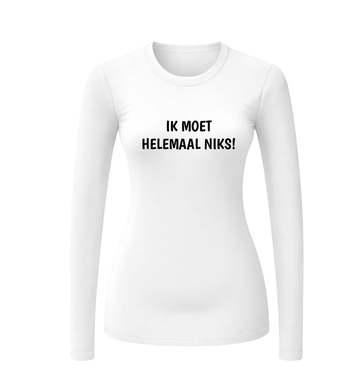 Laat de wereld weten dat jij je eigen pad volgt en jezelf trouw blijft met ons 'Ik moet helemaal niks' t-shirt! Voel de vrijheid om te zijn wie je bent, zonder druk van verwachtingen of verplichtingen. Dit t-shirt is een statement van zelfvertrouwen en zelfexpressie.