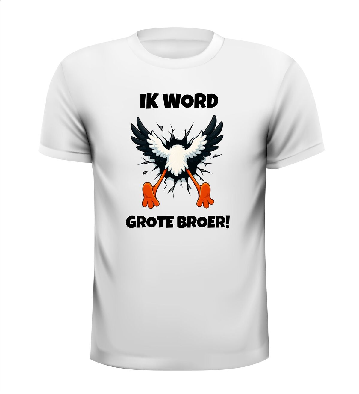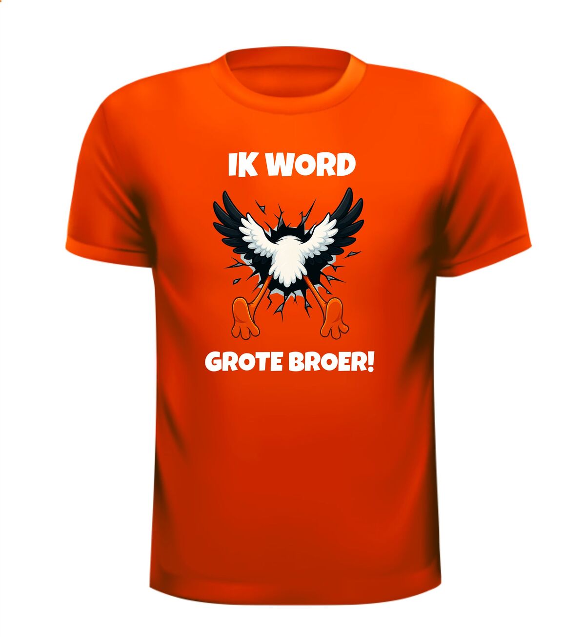 Maak de komst van een nieuw gezinslid extra bijzonder met dit vrolijke “Ik word grote broer”-T-shirt. Het speelse ontwerp met de cartoon-ooievaar die alsof hij door het shirt heen vliegt, geeft het geheel een leuke en energieke uitstraling waar kinderen meteen enthousiast van worden. Het is een unieke manier om een nieuwe geboorte te vieren én om de aanstaande grote zus een bijzondere rol te geven in dit mooie avontuur. Een hartverwarmend T-shirt dat dit speciale nieuws op de leukste manier deelt.
