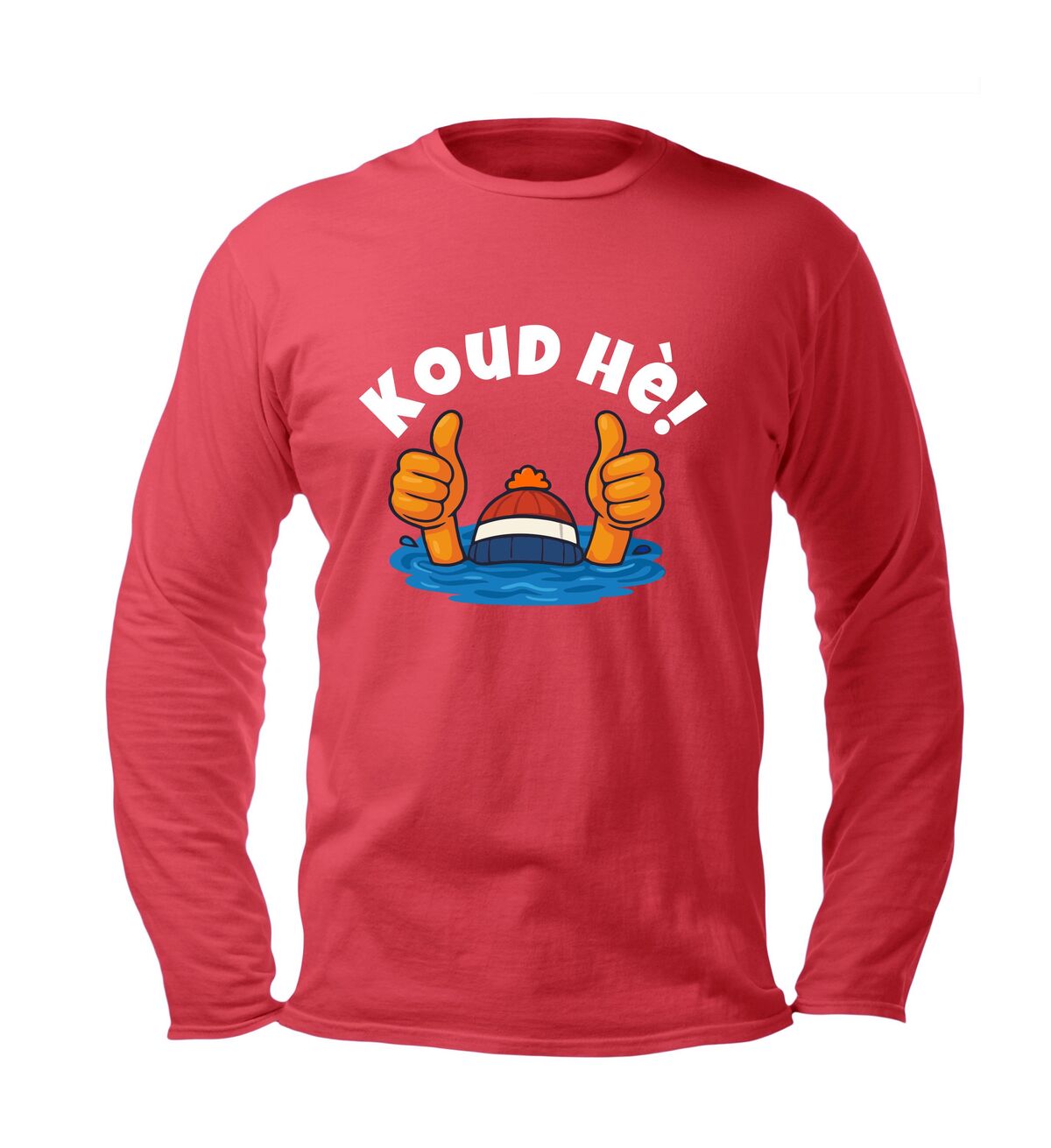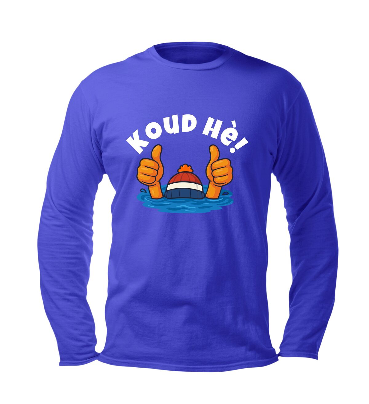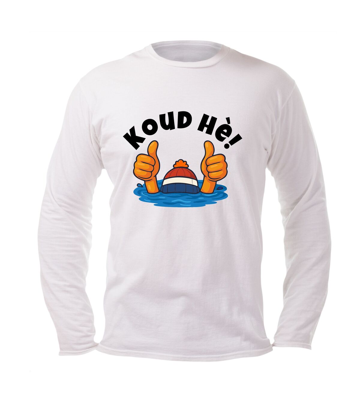 Shirtje Lange mouw koud he! Perfect voor vóór of na de nieuwjaarsduik, tijdens frisse ochtenden of gewoon omdat het buiten nog geen korte-mouwen-weer is.