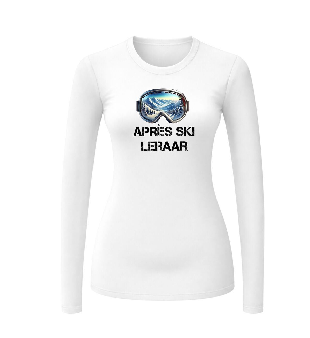 Shirtje lange mouw apre ski leraar met foute ski bril print.