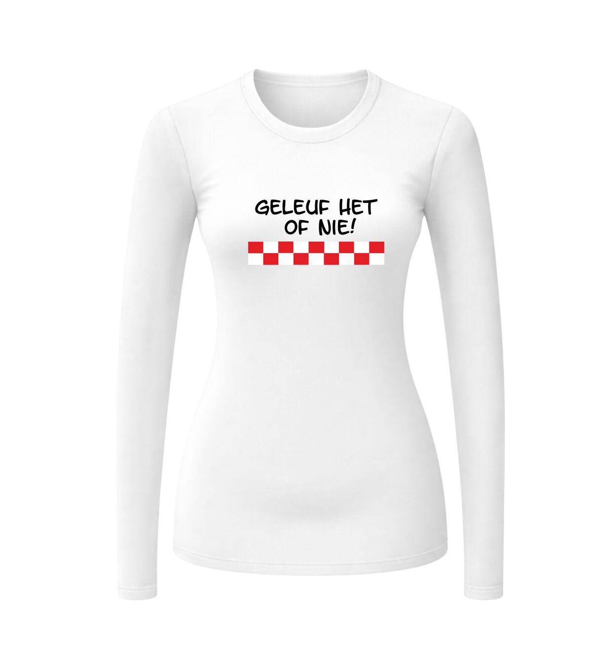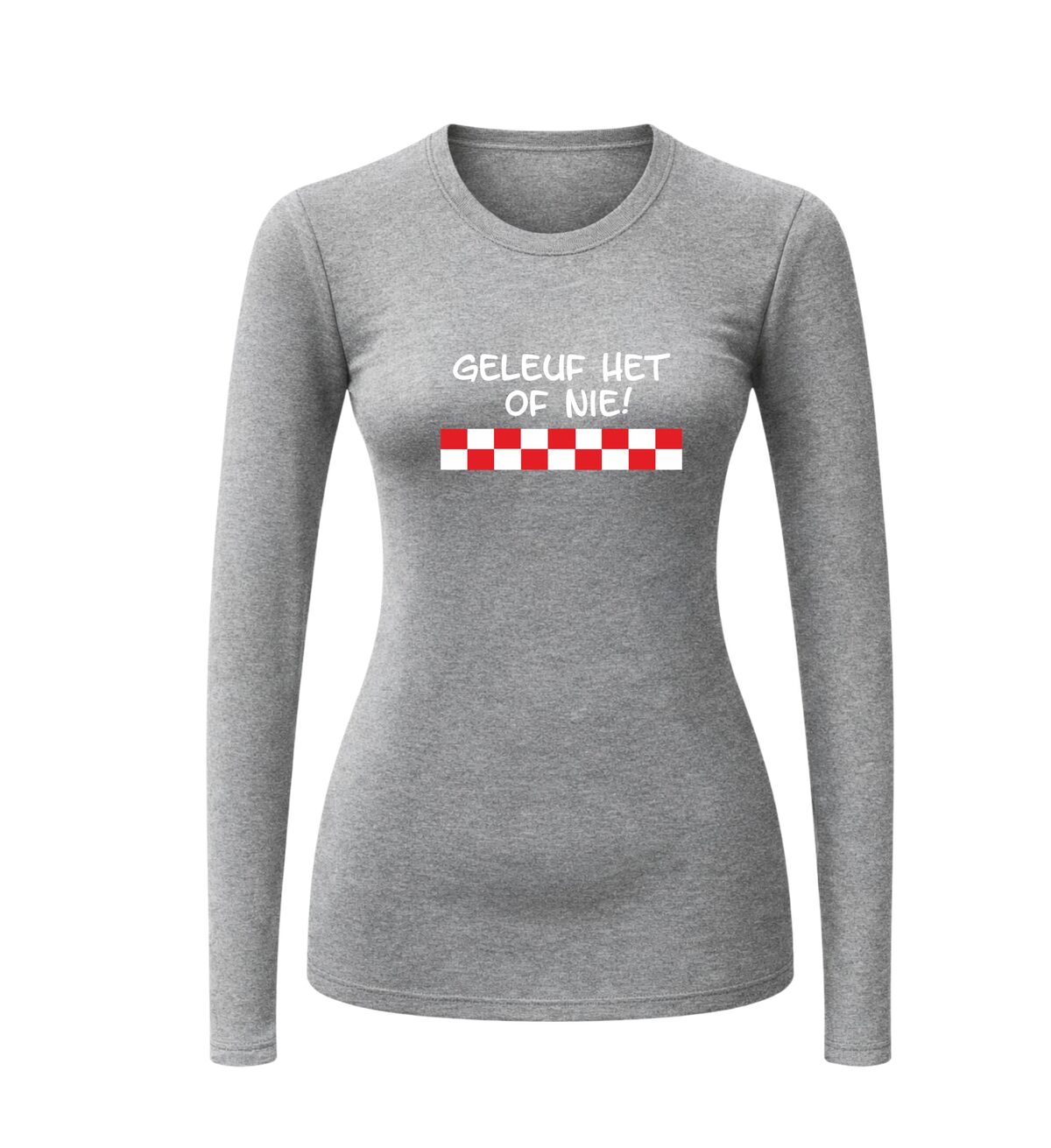 Grappig Brabants Dialect T-shirt lange mouw 'Geleuf het of nie!'
