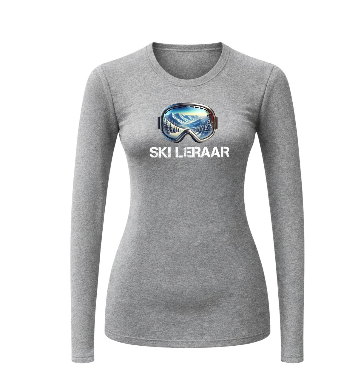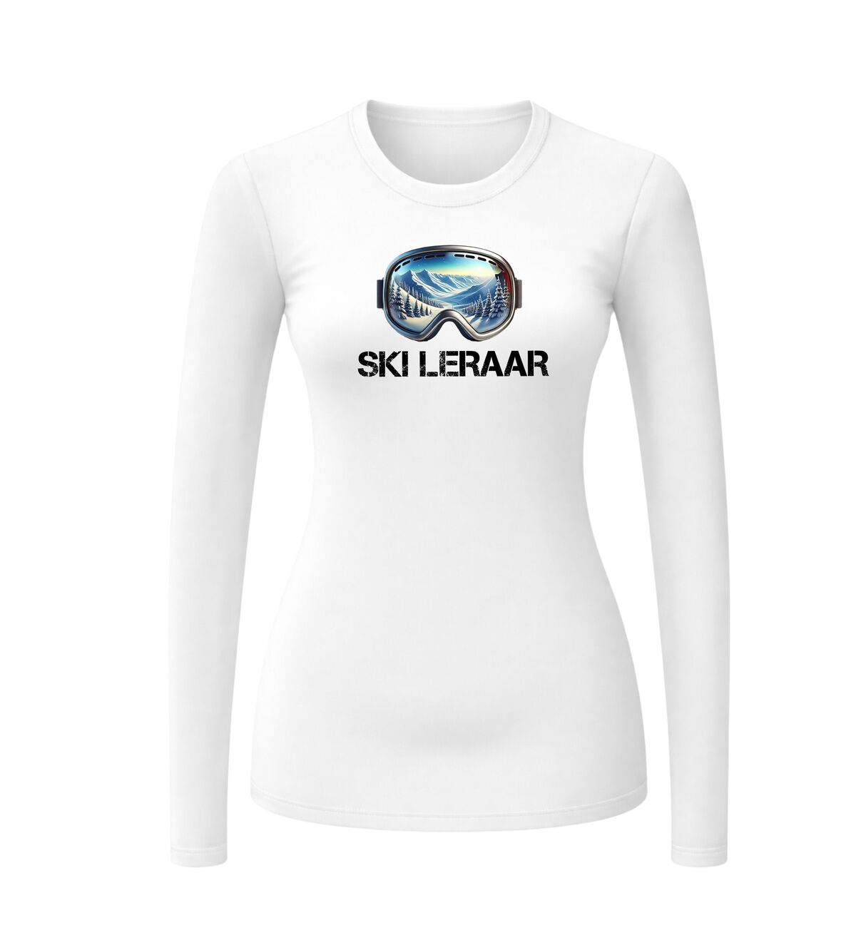 Shirtje lange mouw ski leraar met foute ski bril print.