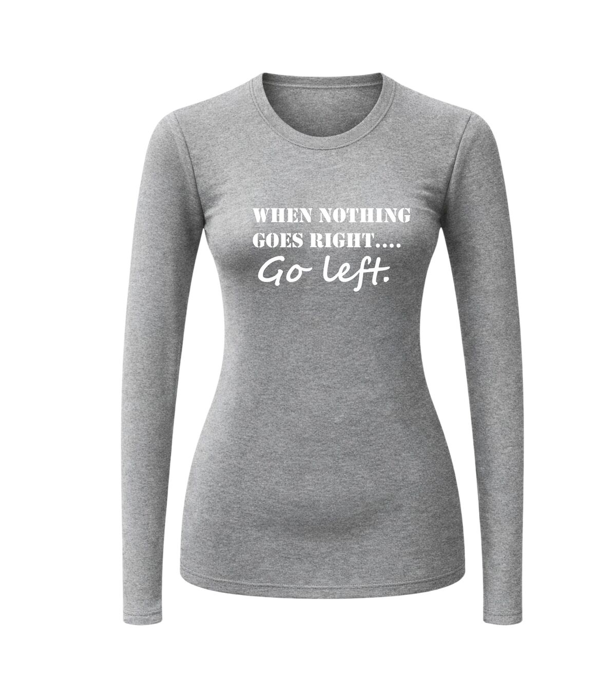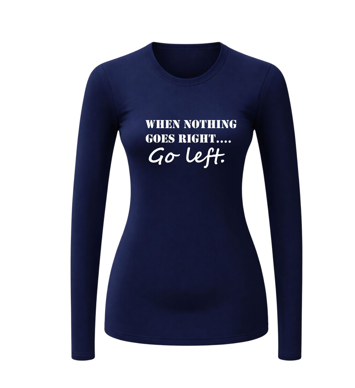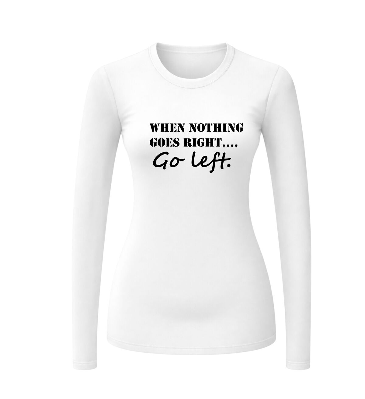T-shirt lange mouw (longsleeve) met de geweldige engelse tekst when nothing goes right go left.