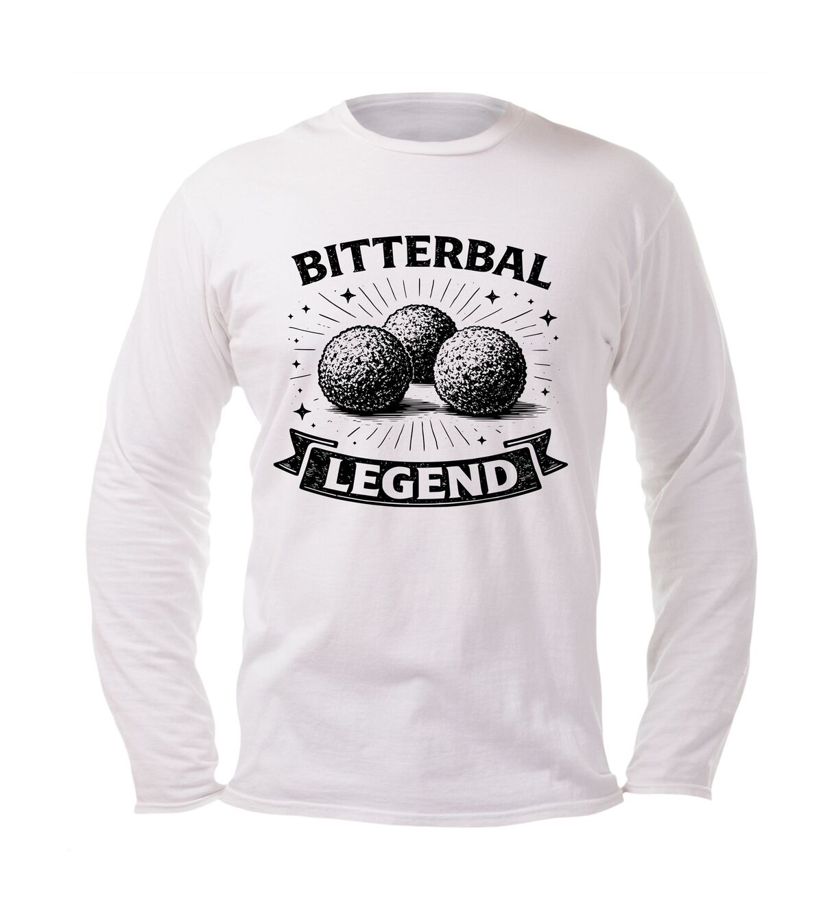 Een superleuk shirt lange mouw voor een echte bitterbal fan. Op het shirt staat een vintage look print met de opdruk 'Bitterbal Legend'