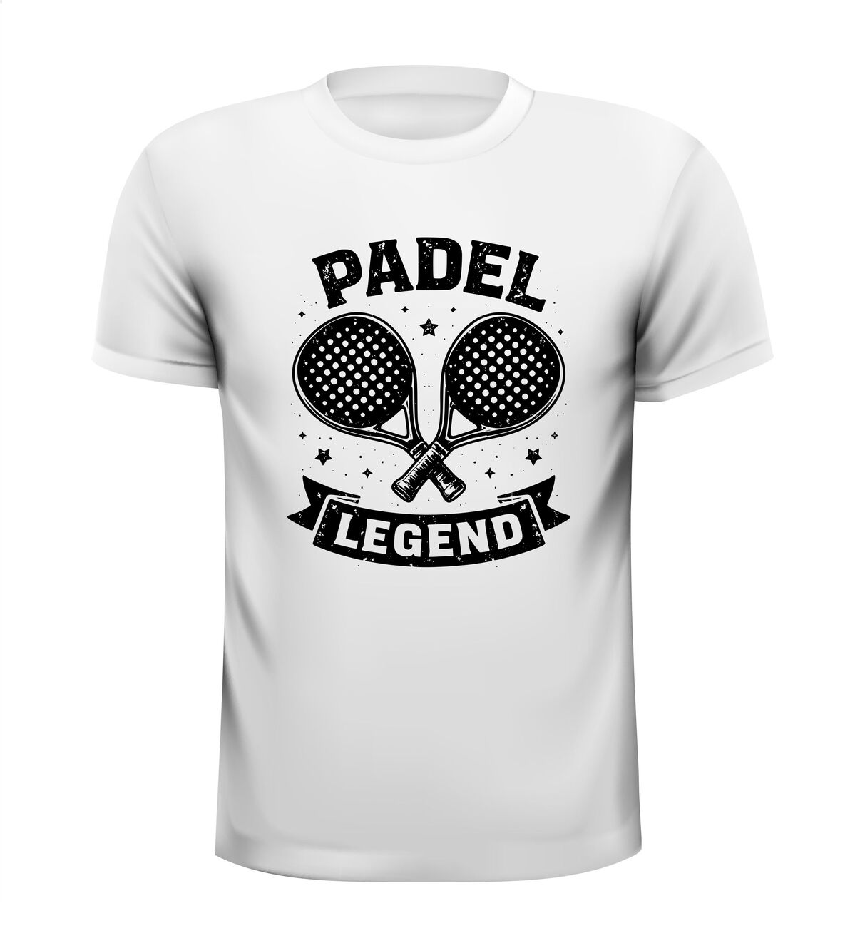 Dit shirt met korte mouwen en de vintage “Padel Legend” print is gemaakt voor liefhebbers van het spel die houden van een pure, no-nonsense uitstraling. Het zwart-witte ontwerp met een subtiele korrelstructuur en gekruiste padelrackets geeft het shirt een authentiek en tijdloos karakter.