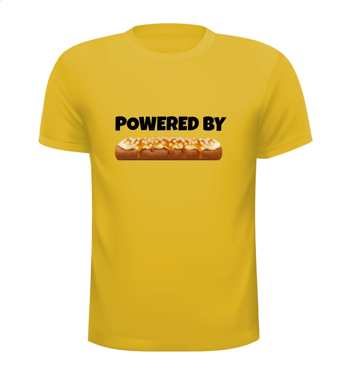 Sommige helden hebben geen cape nodig — alleen een frikandel speciaal. Dit shirt is een ode aan de echte smaakmakers van Nederland: mensen die weten dat een beetje mayo, curry en uitjes het leven net wat beter maken. Draag het met trots, een glimlach en misschien een servetje… want jij bent officieel Powered by Frikandel Speciaal.