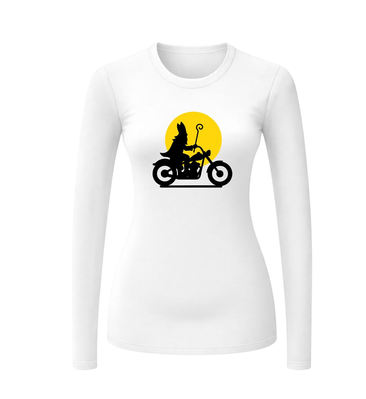 Shirtje Sinterklaas op de motor in de maneschijn. Lange mouw uitvoering.