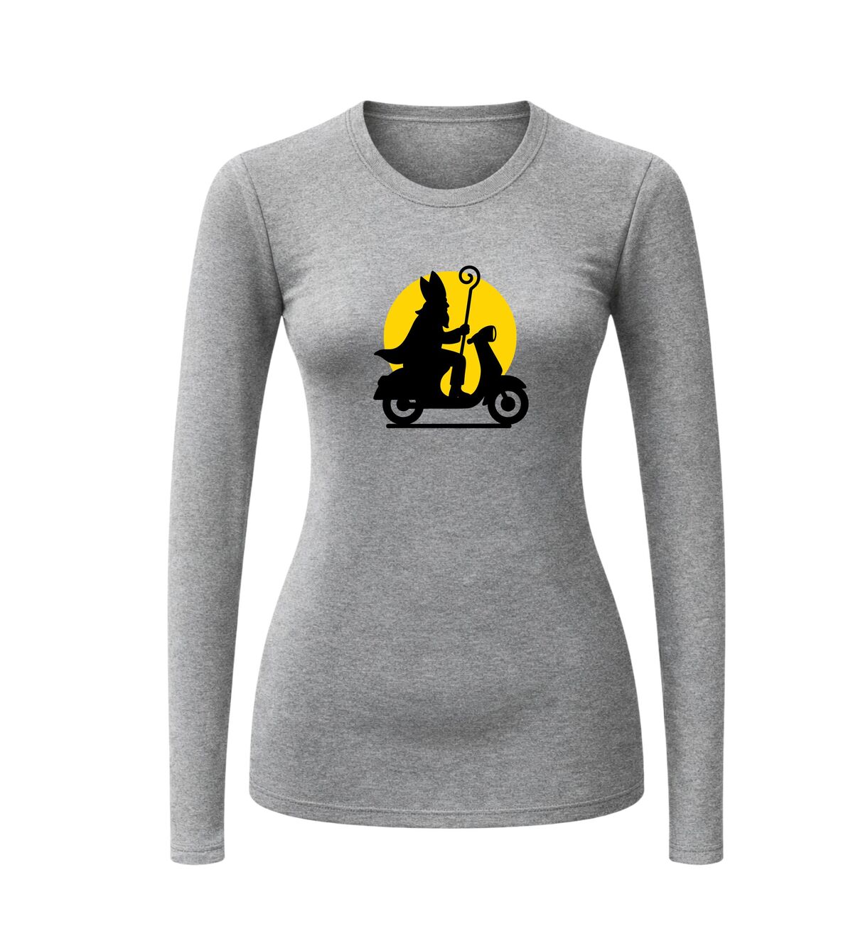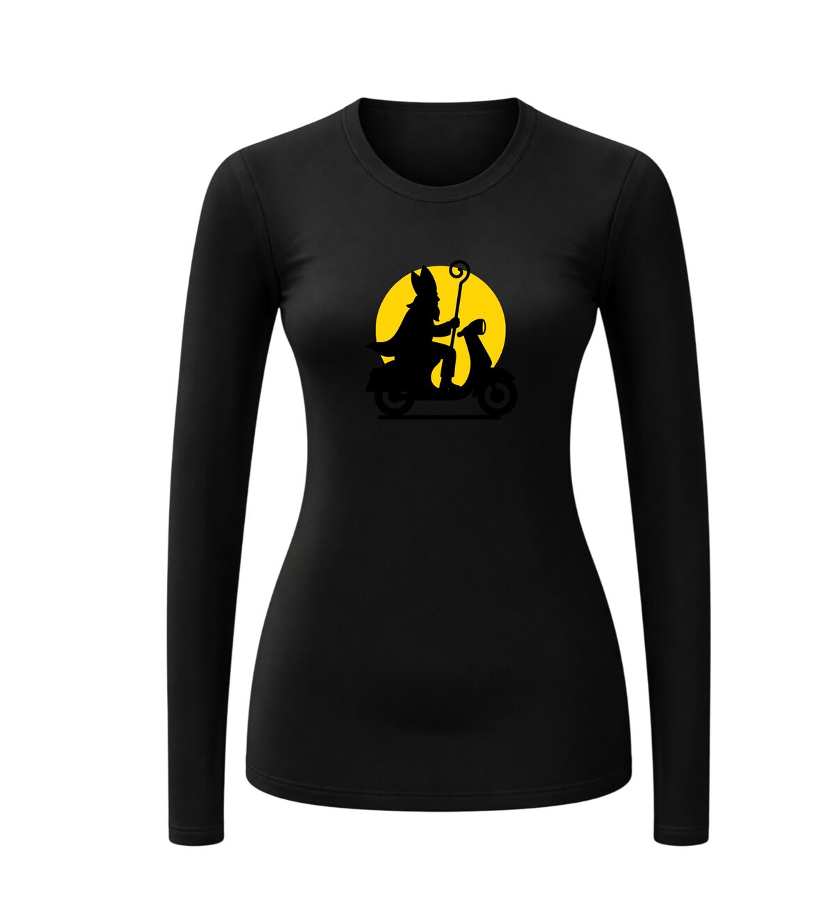 Shirtje Sinterklaas op de scooter bij maneschijn lange mouw! Ook Sinterklaas gaat met zijn tijd mee!