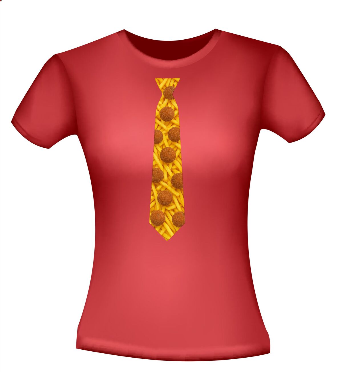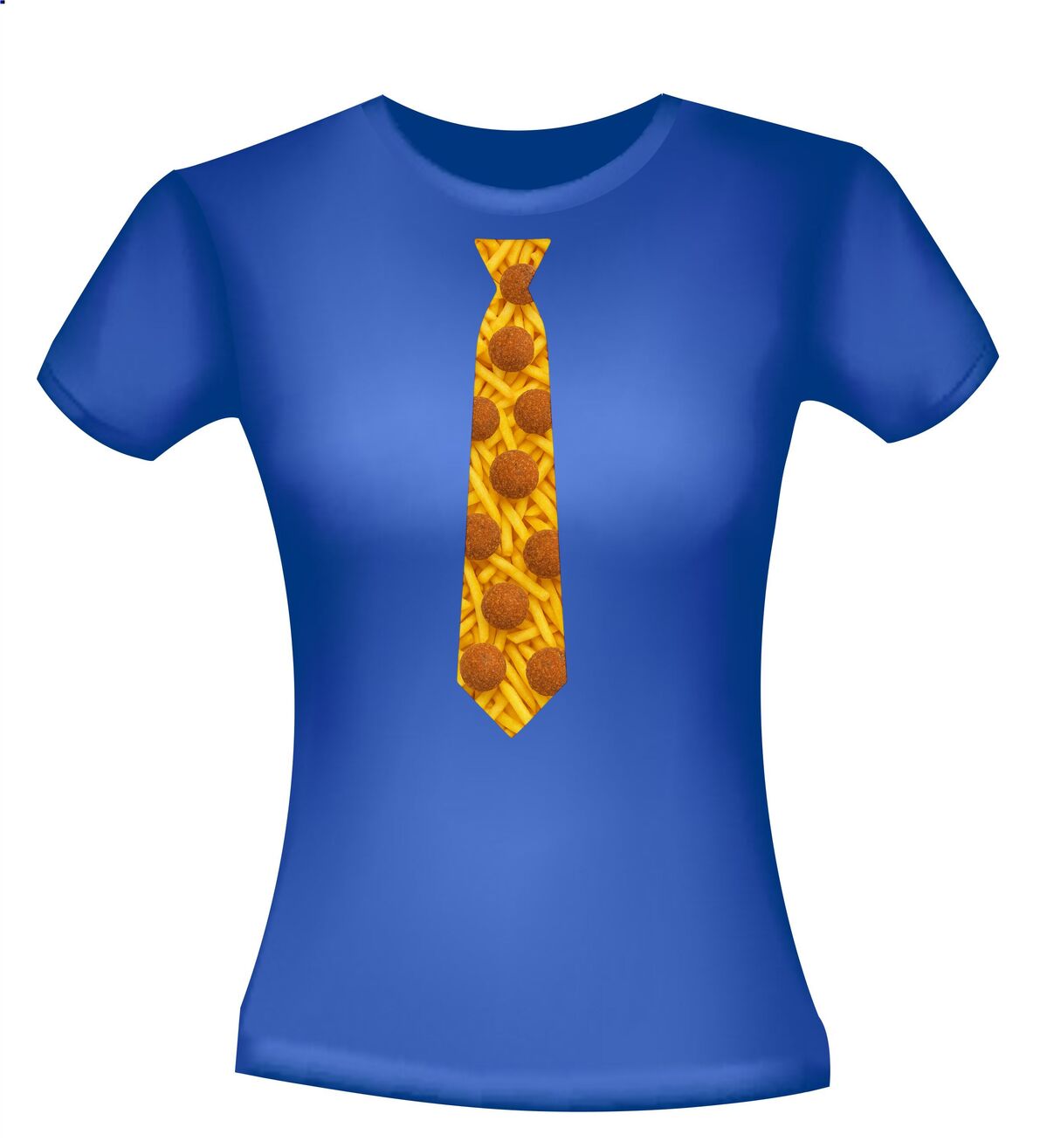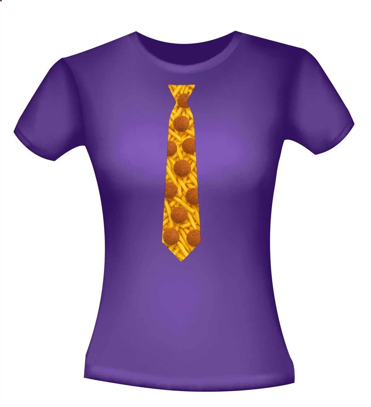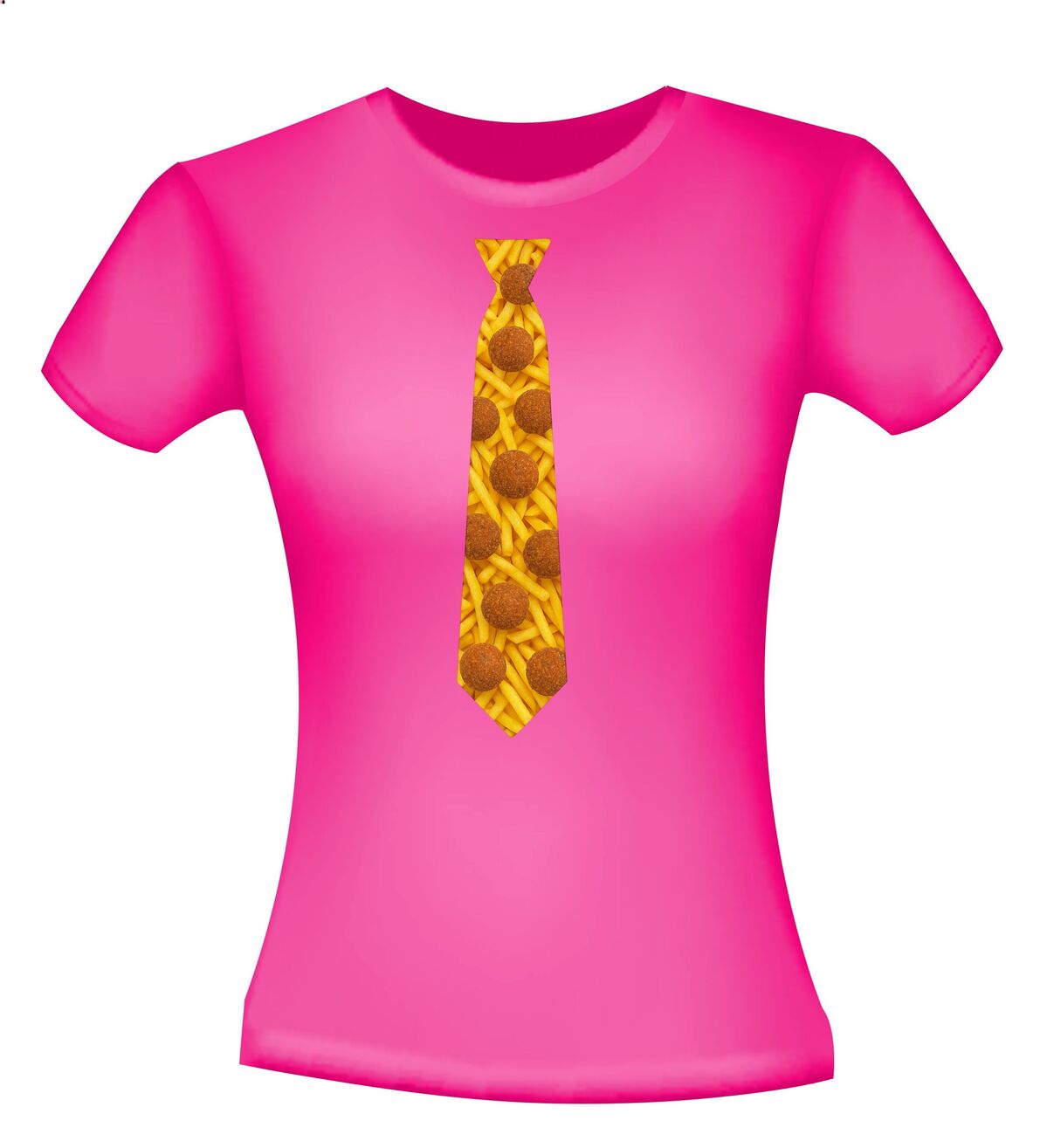 Shirtje Stropdas met bitterballen print! Supergave stropdas print met de opdruk van frietjes op de achtergrond en bitterballen op de voorgrond. Leuk voor elk snack feestje!