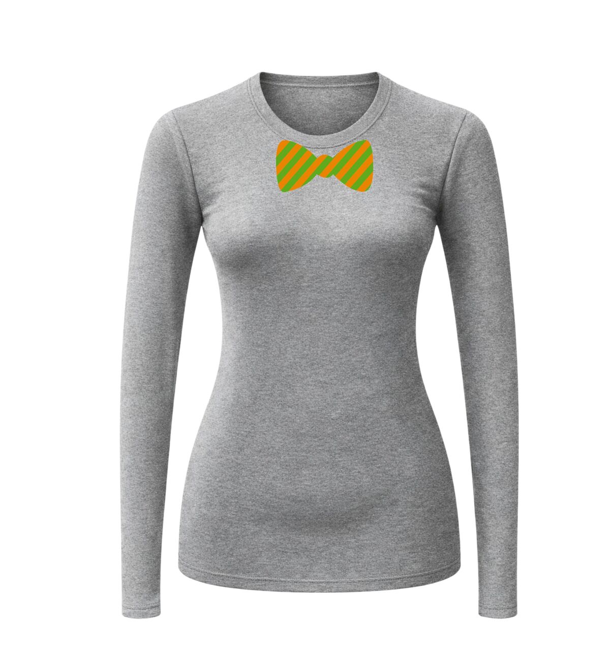 Shirtje lange mouw met de opdruk van een vlinderstrik in de kleuren van Kruikenstad. Tijdens Carnaval heet Breda Kruikenstad en de hoofd kleuren zijn dan groen / oranje.