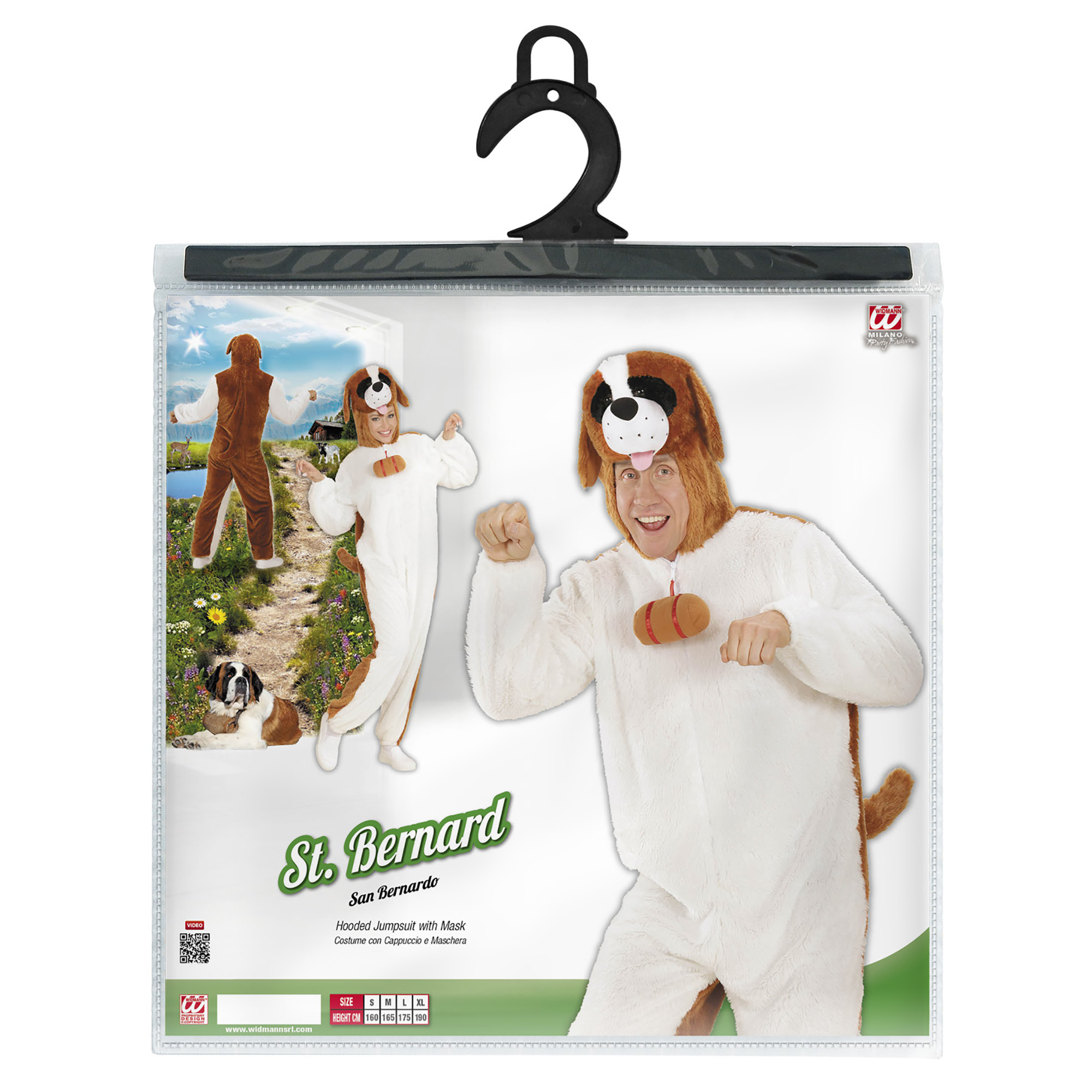 Ben jij zo' n trouwe hond? Wil je graag als dier verkleed naar het thema dieren en beesten gaan feesten of gewoon na carnaval? Waarom niet als sint bernard hond. Deze mooie plusche honden onesie heeft een mooie cappuchon met een honden muts eraan . Lekker warm ook als je buiten je dagelijkse wandeling gaat maken. dit kostuum is geschikt voor volwassenen.