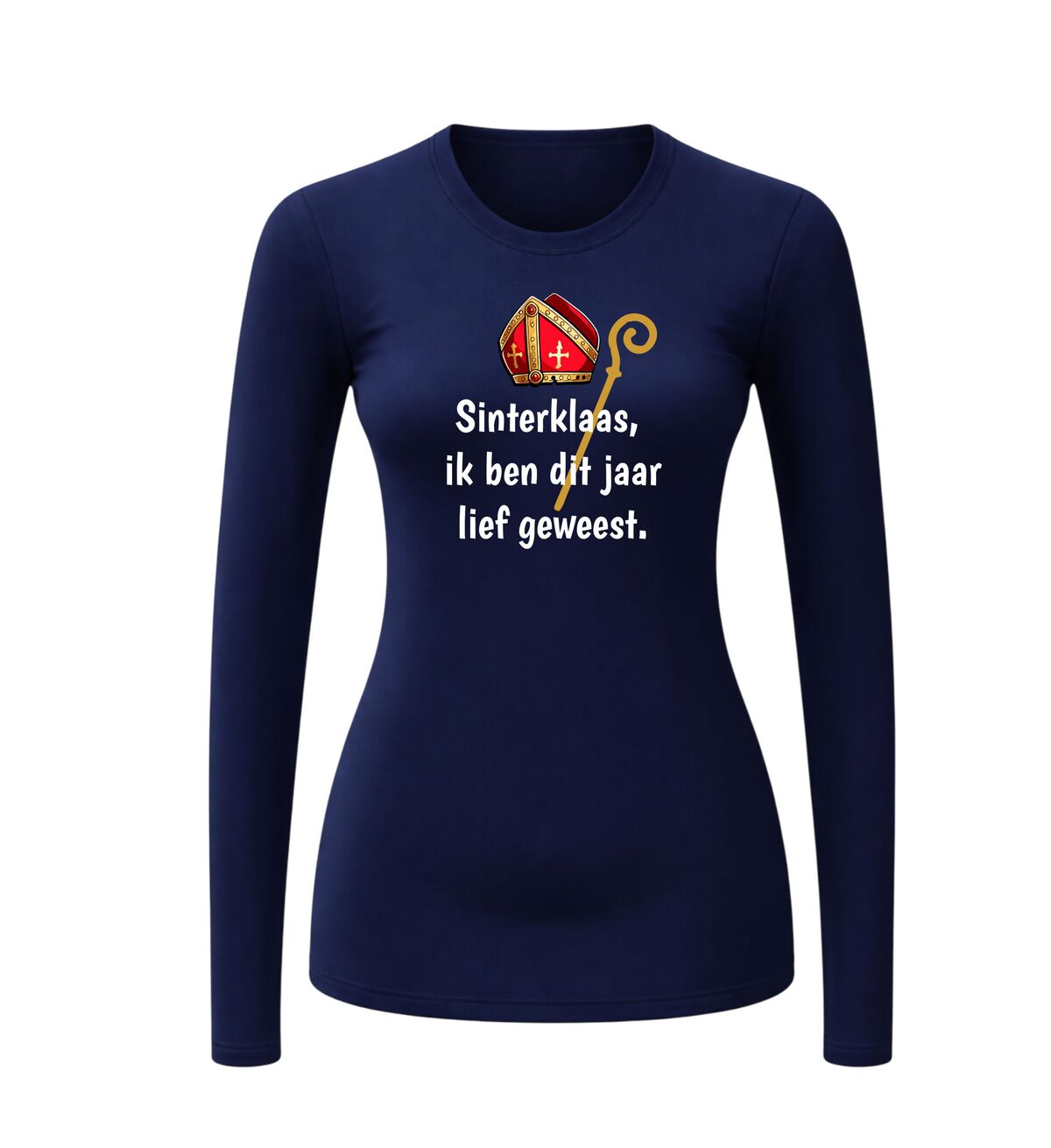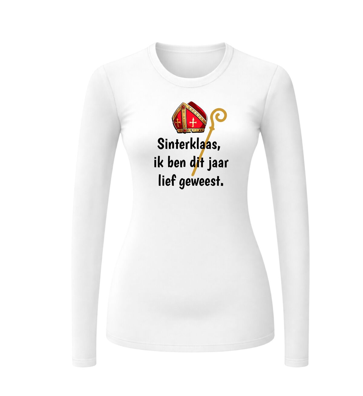 Trek dit shirt aan en je maakt Sinterklaas en Zwarte Piet helemaal blij. Met de tekst Sint ik ben lief geweest dit jaar lief geweest zal sinterklaas dit direct geloven.