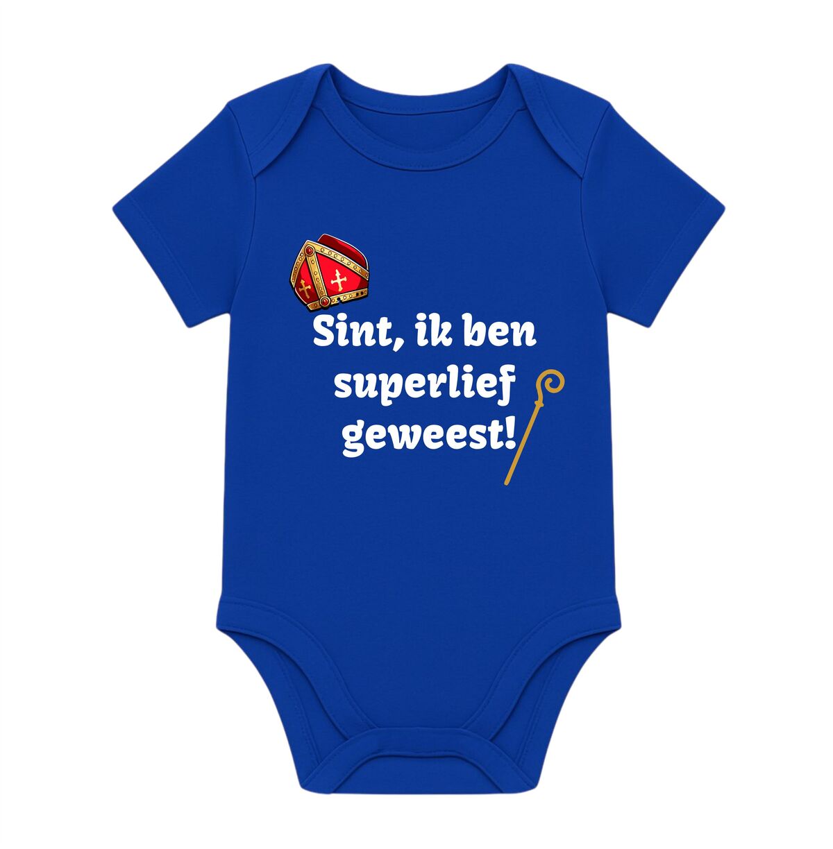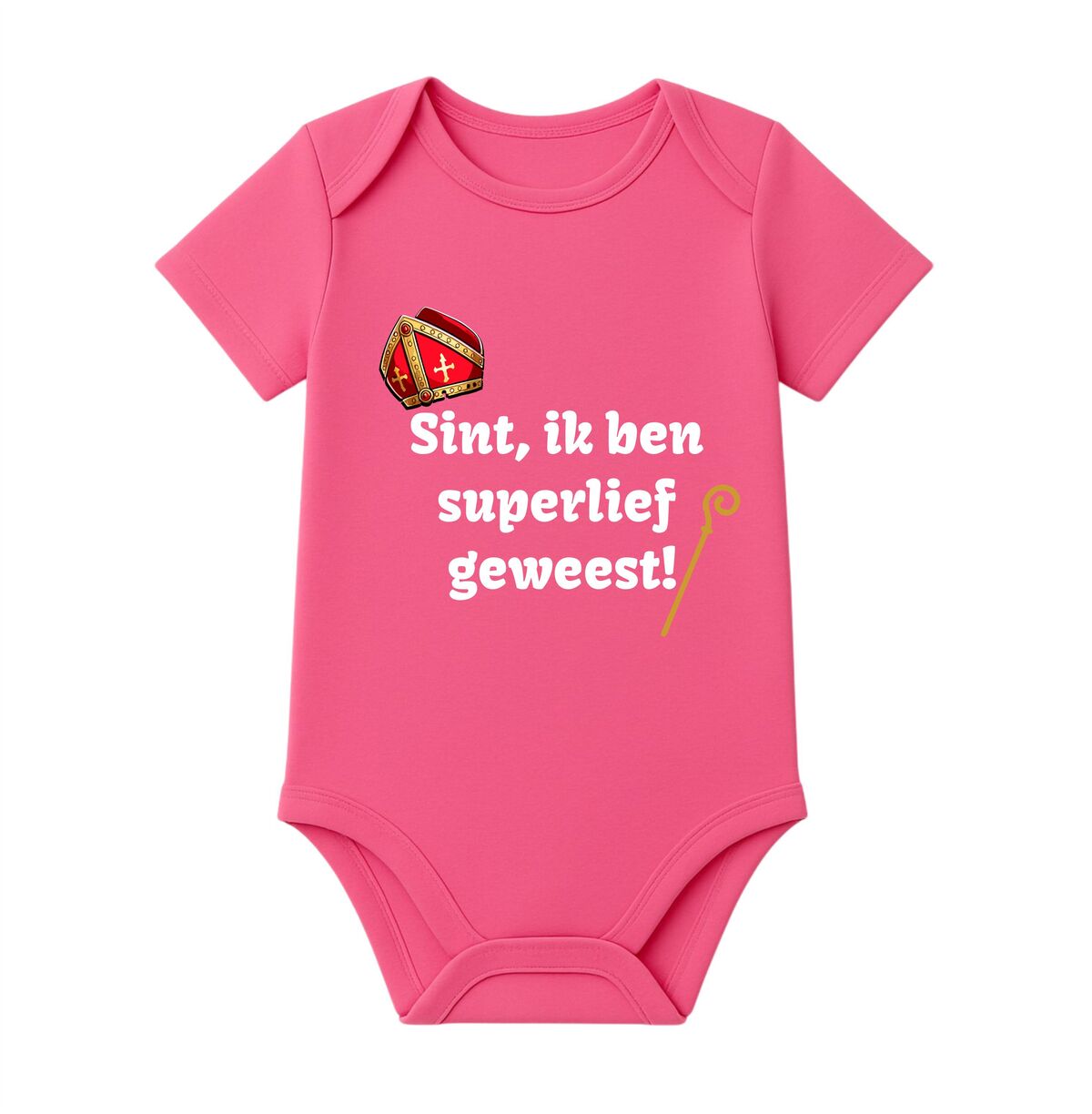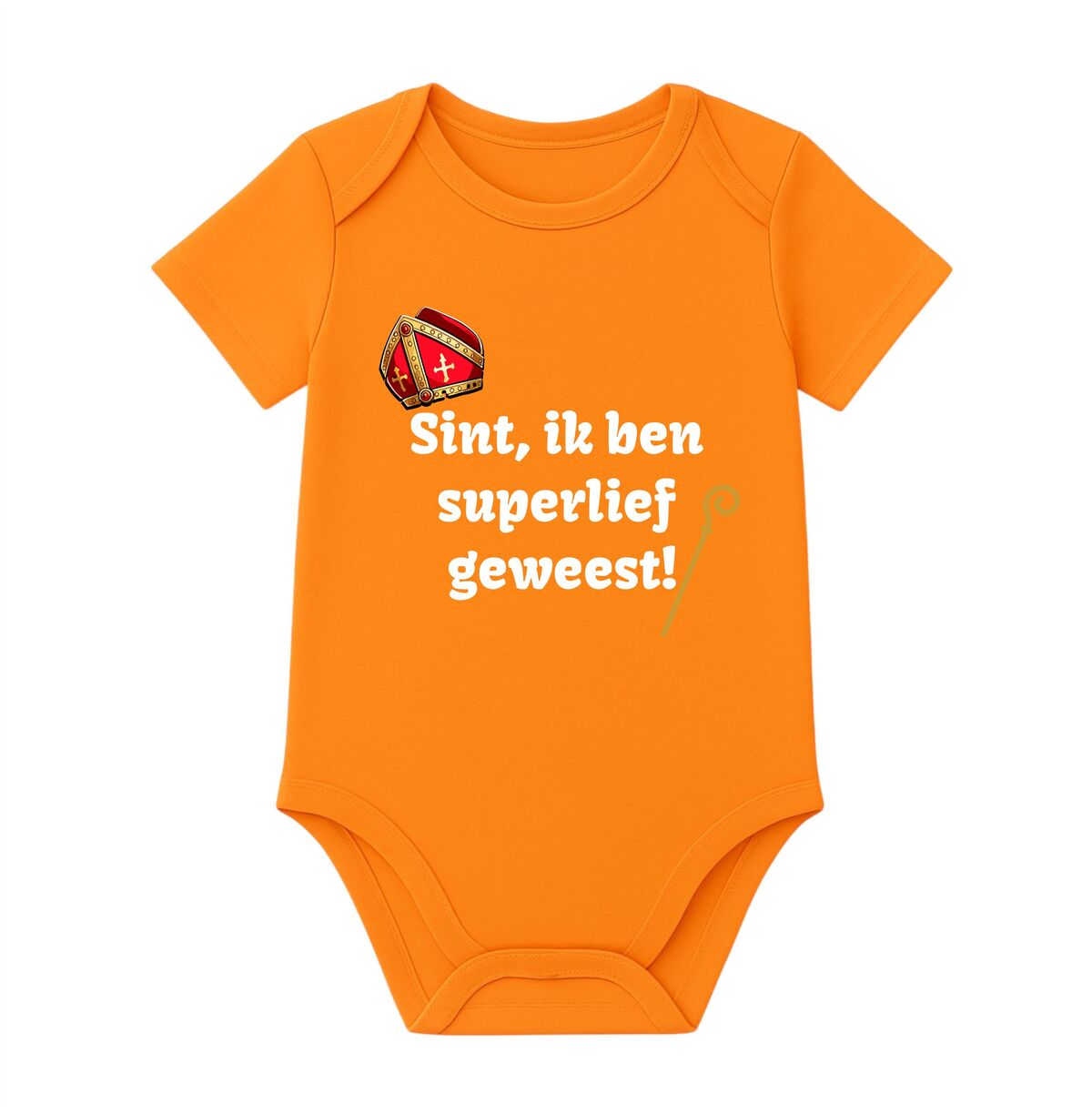 Trek je kleine kroost dit t-shirt aan tijdens het sinterklaasfeest. De tekst op de romper : Sint ik ben dit jaar superlief geweest romper.