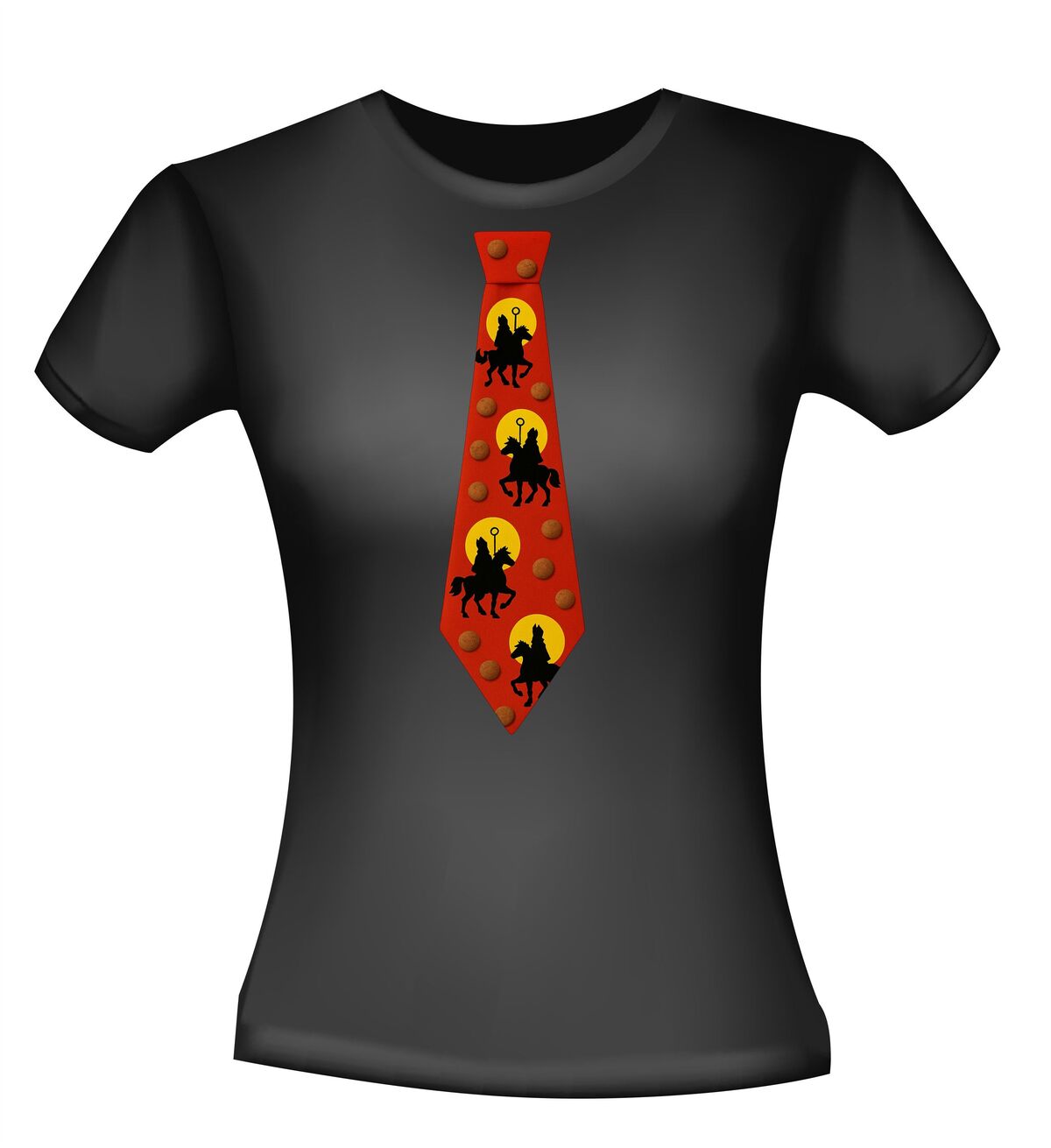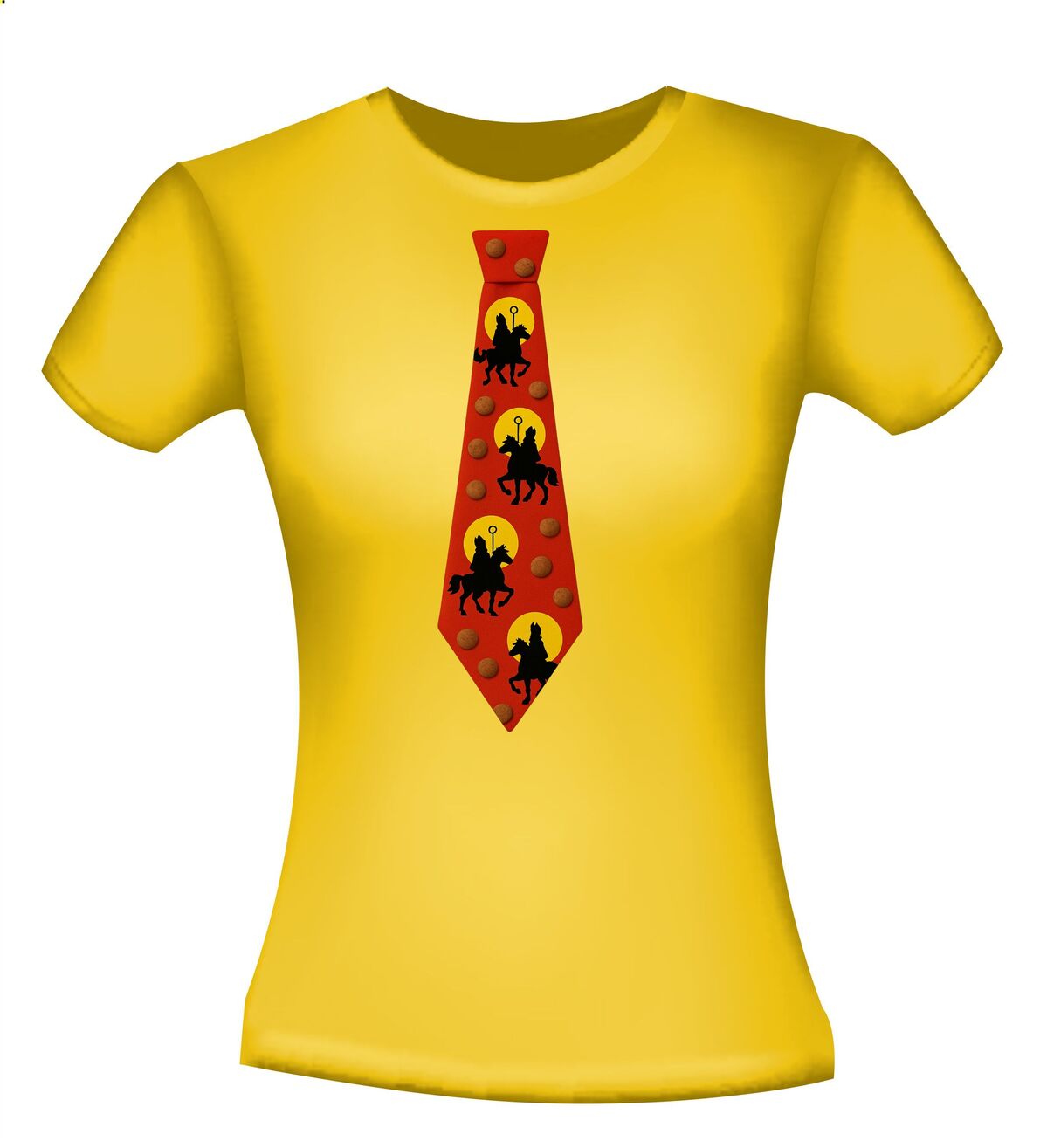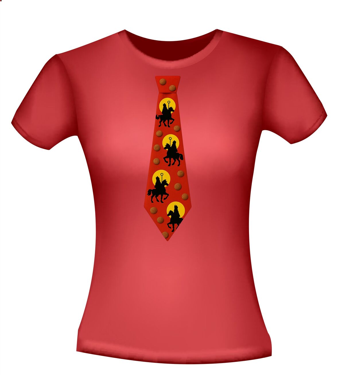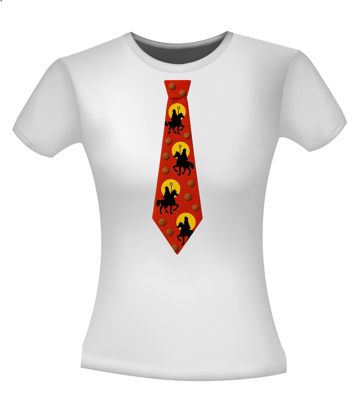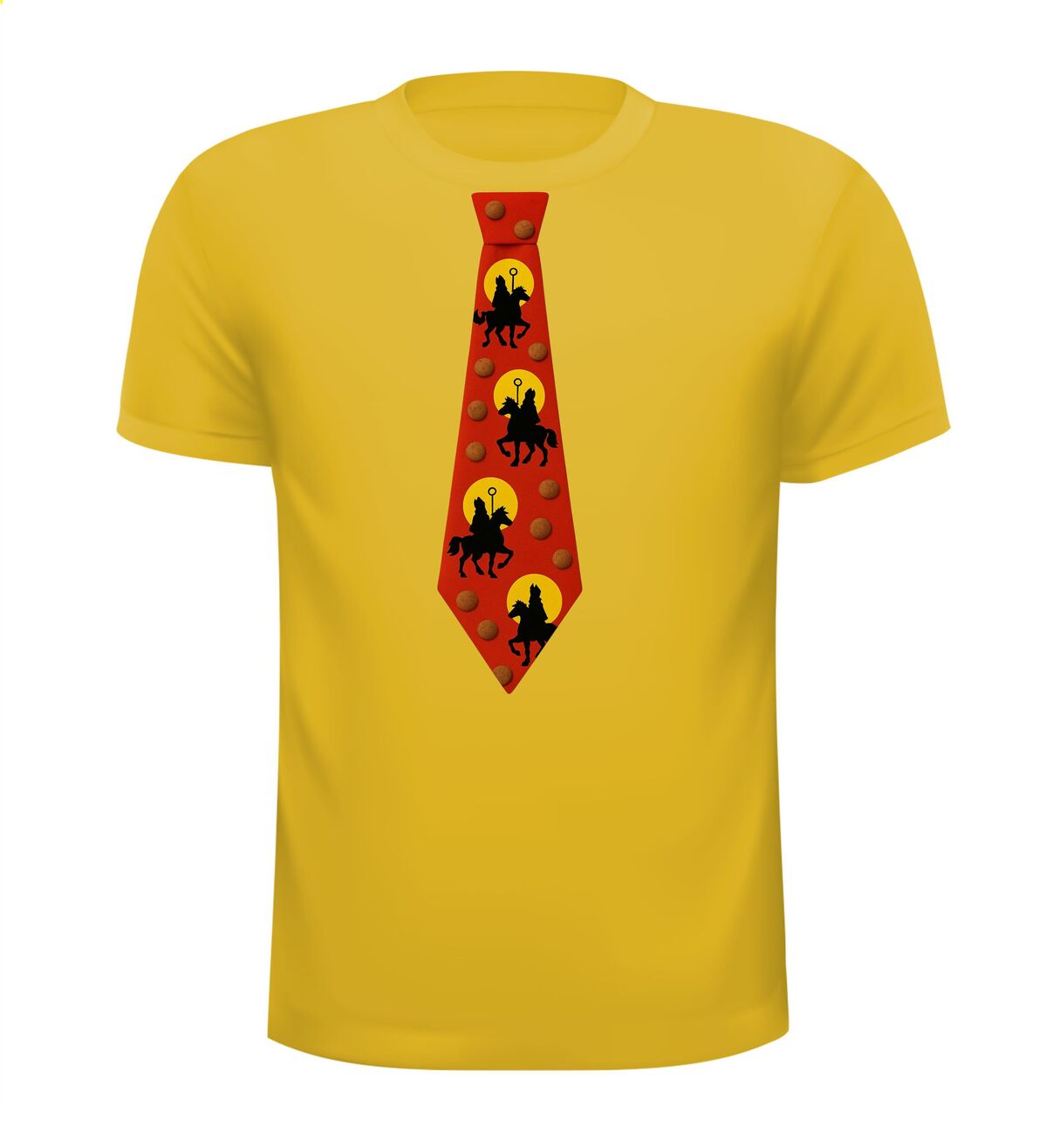 Met dit vrolijke Sinterklaas-stropdas op je T-shirt steel jij gegarandeerd de show bij elk pakjesavond-feest. De klassieke rode achtergrond vol knapperige pepernoten en de trotse silhouetten van Sinterklaas op zijn paard brengen meteen de warme decembermagie tot leven. Perfect voor wie zijn liefde voor het Sinterklaasfeest met een knipoog wil dragen — feestelijk, grappig en helemaal in de sfeer van het heerlijk avondje