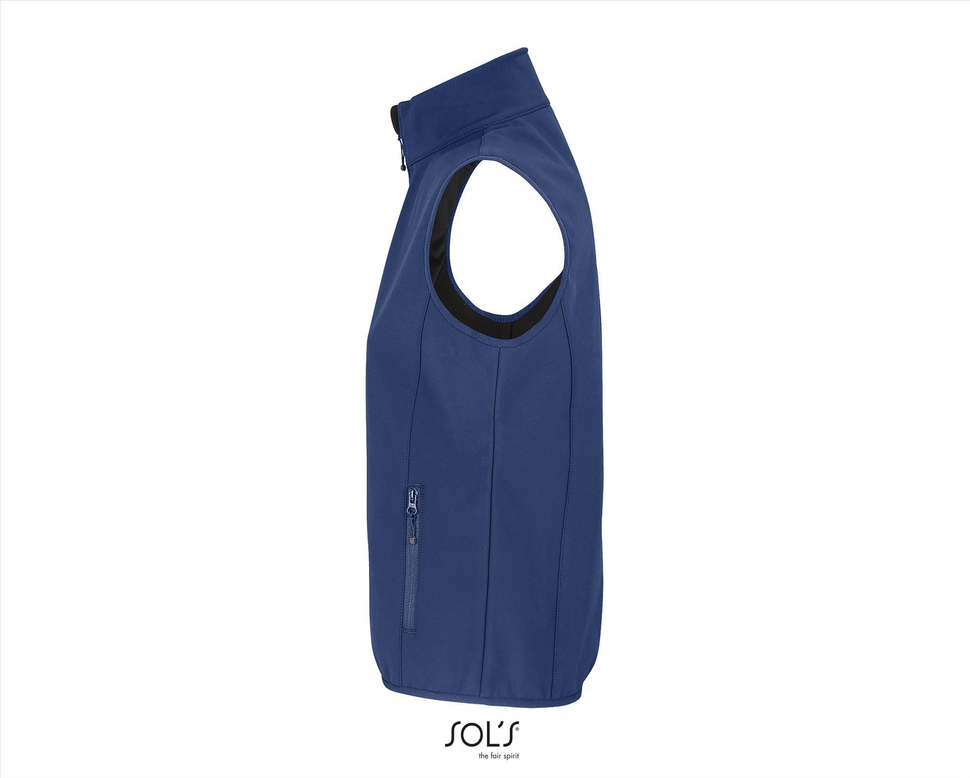 Een 3 laags Softshel Bodywarmer blauw voor dames met gerecycled polyester. Merk SOL'S Falcon BW Women. Materiaal:94% Recycled Polyester - 6% Elastane. Dikte:270 g/m2. Foto met model erop is een sfeer foto kleur buiten beschouwing houden. Land van herkomst:Bangladesh.