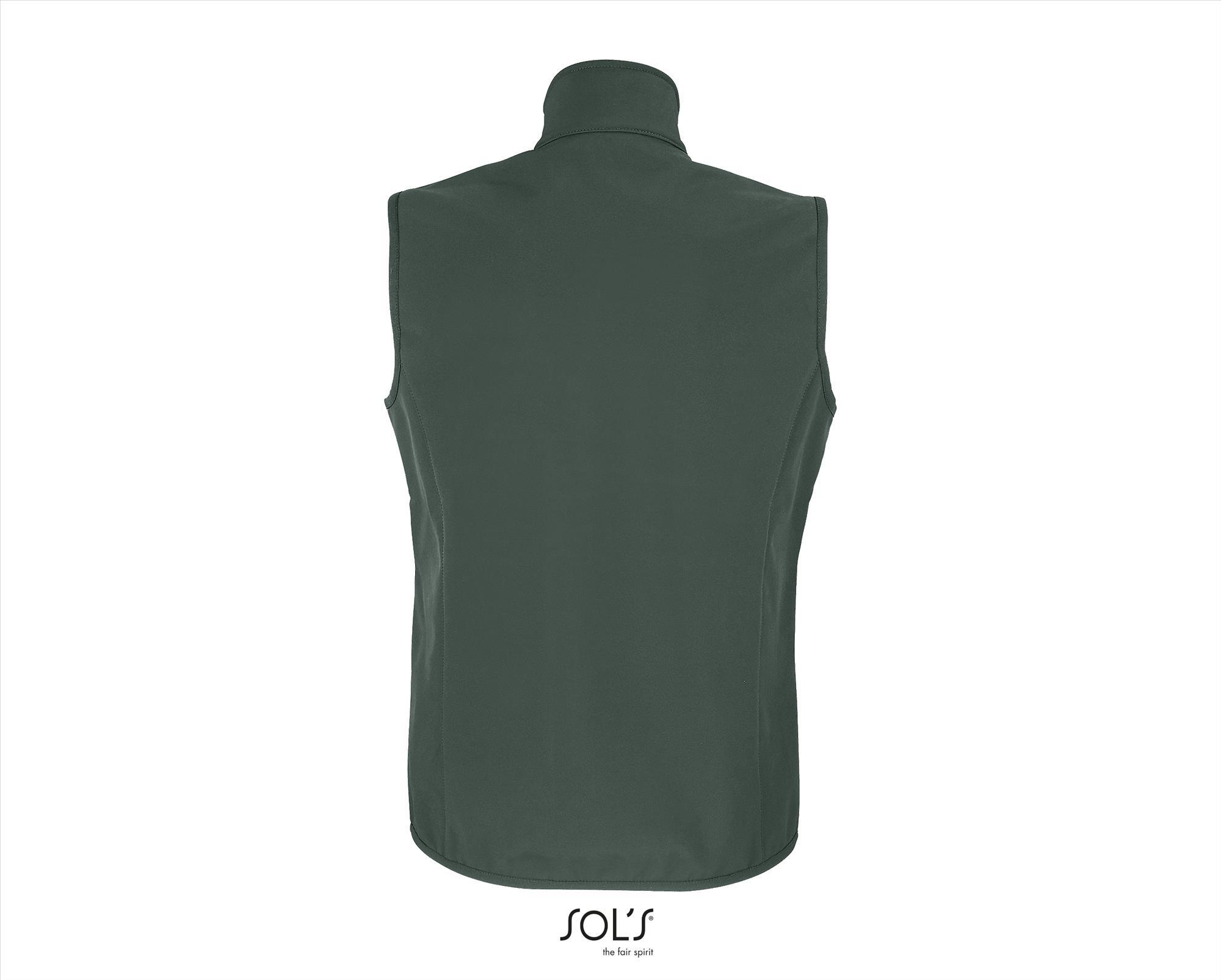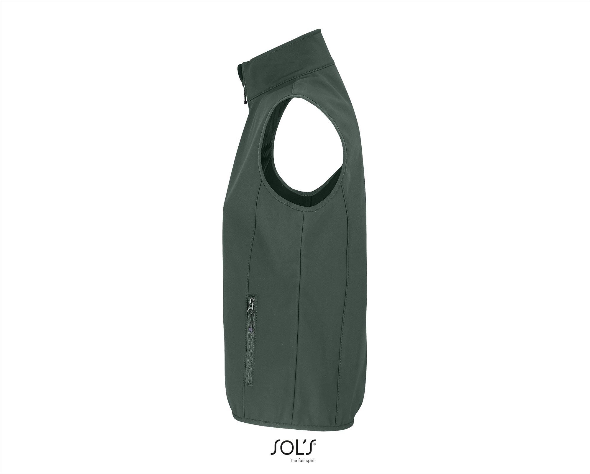 Een 3 laags Softshel Bodywarmer donkergroen voor dames met gerecycled polyester. Merk SOL'S Falcon BW Women. Materiaal:94% Recycled Polyester - 6% Elastane. Dikte:270 g/m2. Foto met model erop is een sfeer foto kleur buiten beschouwing houden. Land van herkomst:Bangladesh.