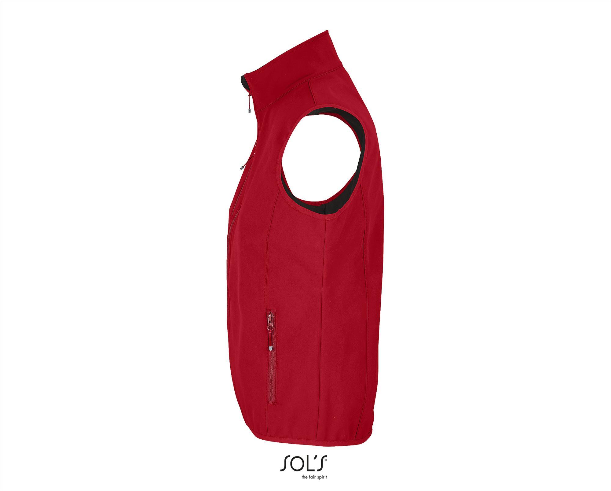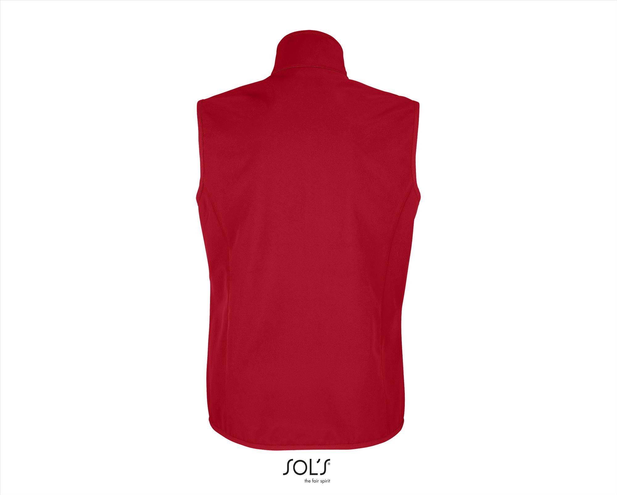 Een 3 laags Softshel Bodywarmer peper rood voor dames met gerecycled polyester. Merk SOL'S Falcon BW Women. Materiaal:94% Recycled Polyester - 6% Elastane. Dikte:270 g/m2. Foto met model erop is een sfeer foto kleur buiten beschouwing houden. Land van herkomst:Bangladesh.