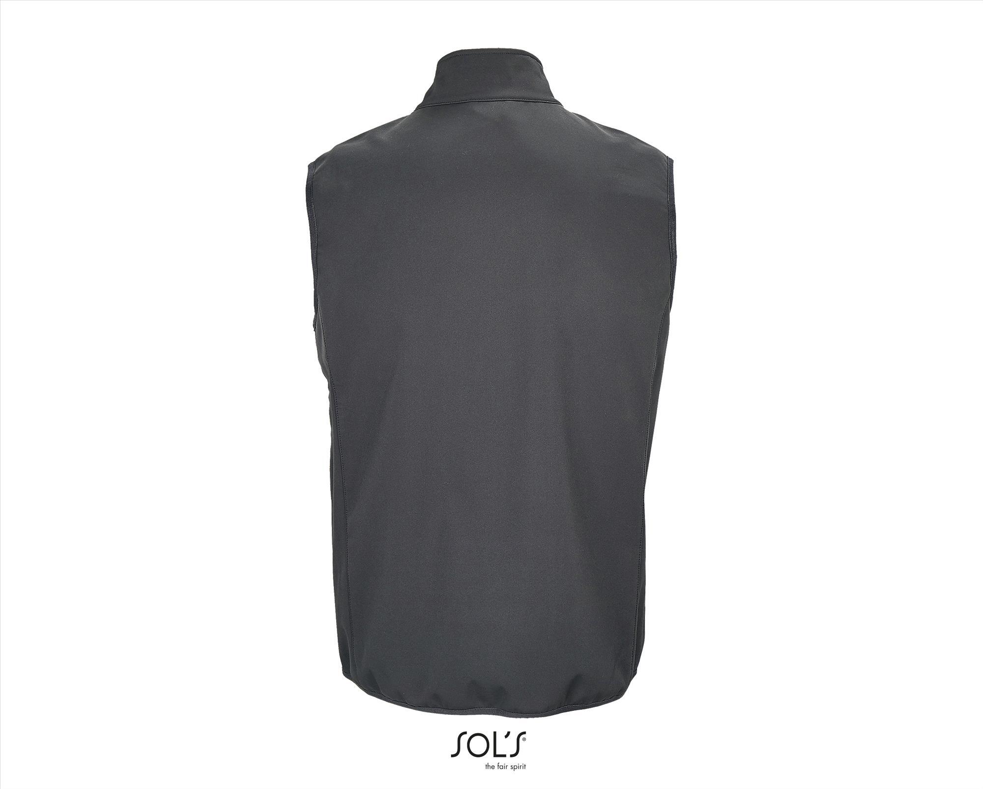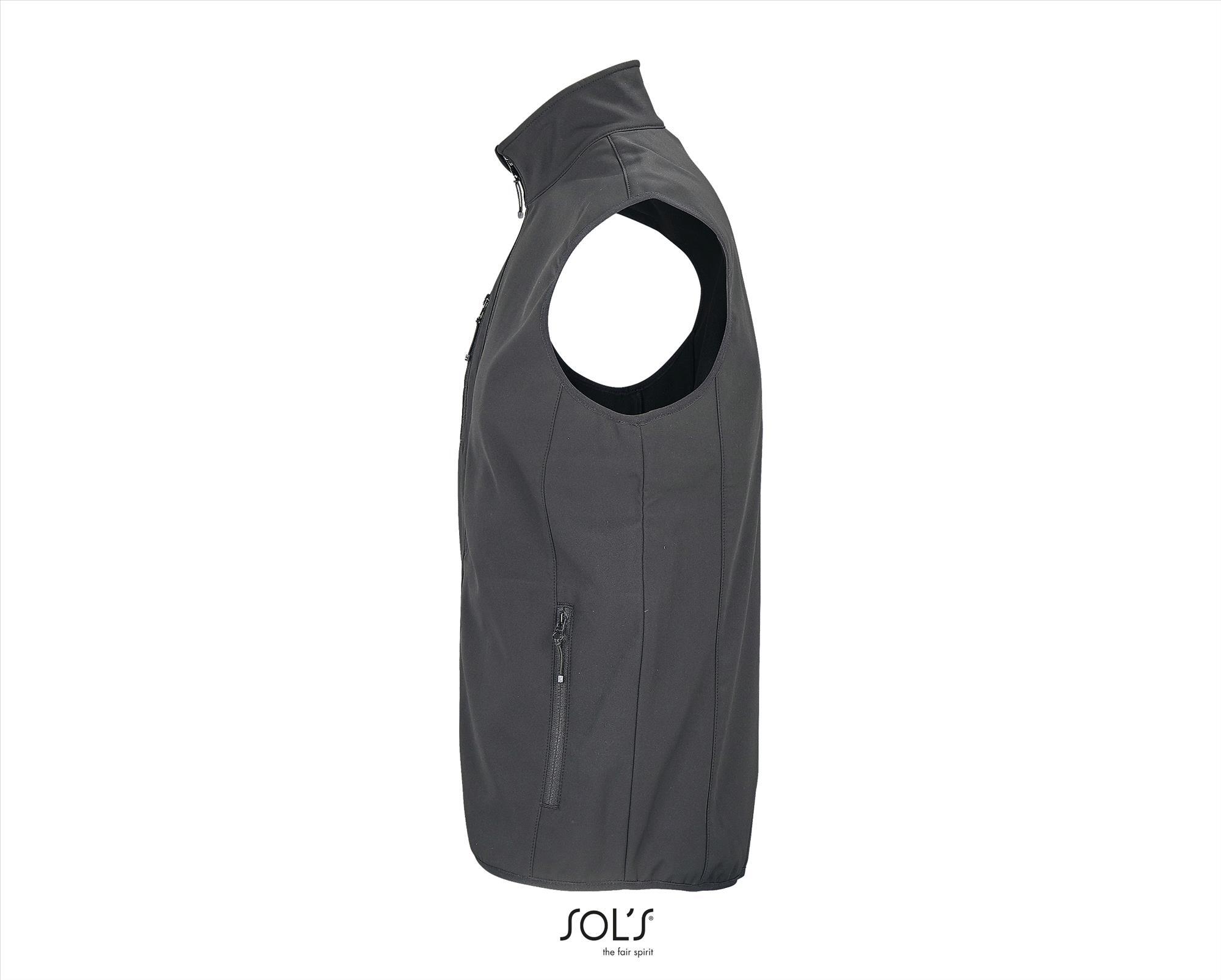 Een 3 laags Softshel Bodywarmer houtskool grijs voor heren met gerecycled polyester. Merk SOL'S Falcon BW Men. Materiaal:94% Recycled Polyester - 6% Elastane. Dikte:270 g/m2. Foto met model erop is een sfeer foto kleur buiten beschouwing houden. Land van herkomst:Bangladesh.