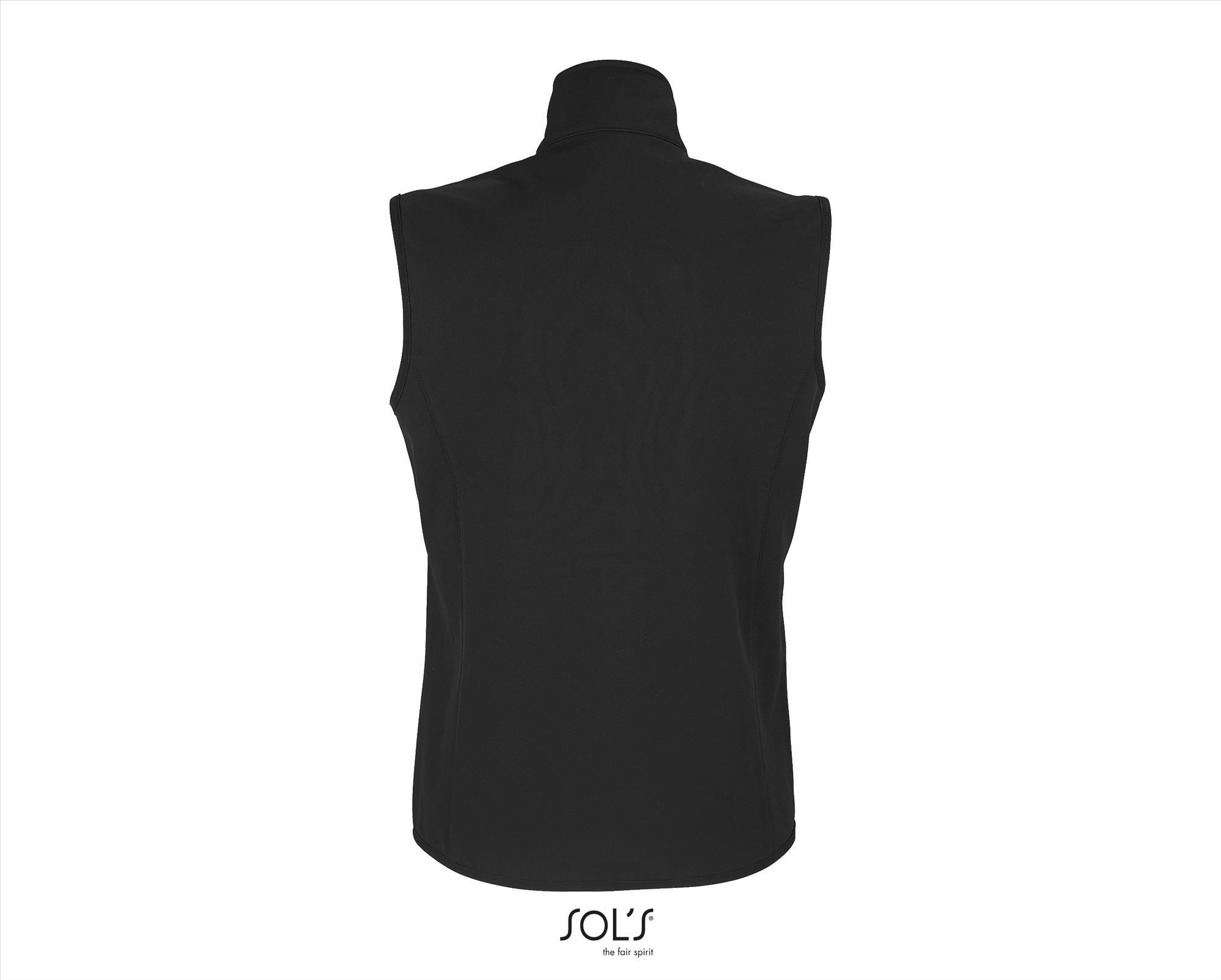 Een 3 laags Softshel Bodywarmer zwart voor dames met gerecycled polyester. Merk SOL'S Falcon BW Women. Materiaal:94% Recycled Polyester - 6% Elastane. Dikte:270 g/m2. Foto met model erop is een sfeer foto kleur buiten beschouwing houden. Land van herkomst:Bangladesh.