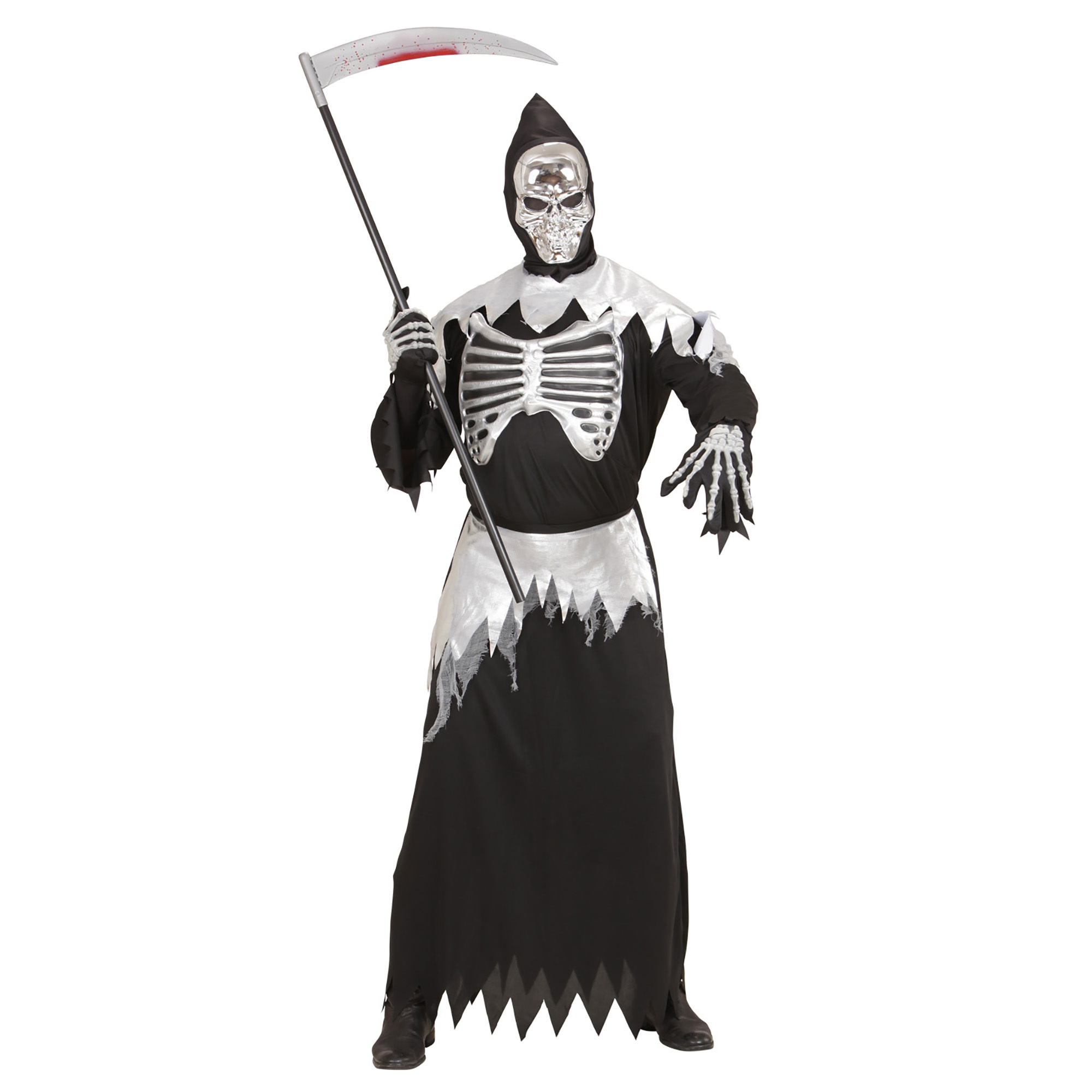 Spooky magere hein kostuum Bestaande uit: Gewaad met ribben kostuum, riem, masker met kap.