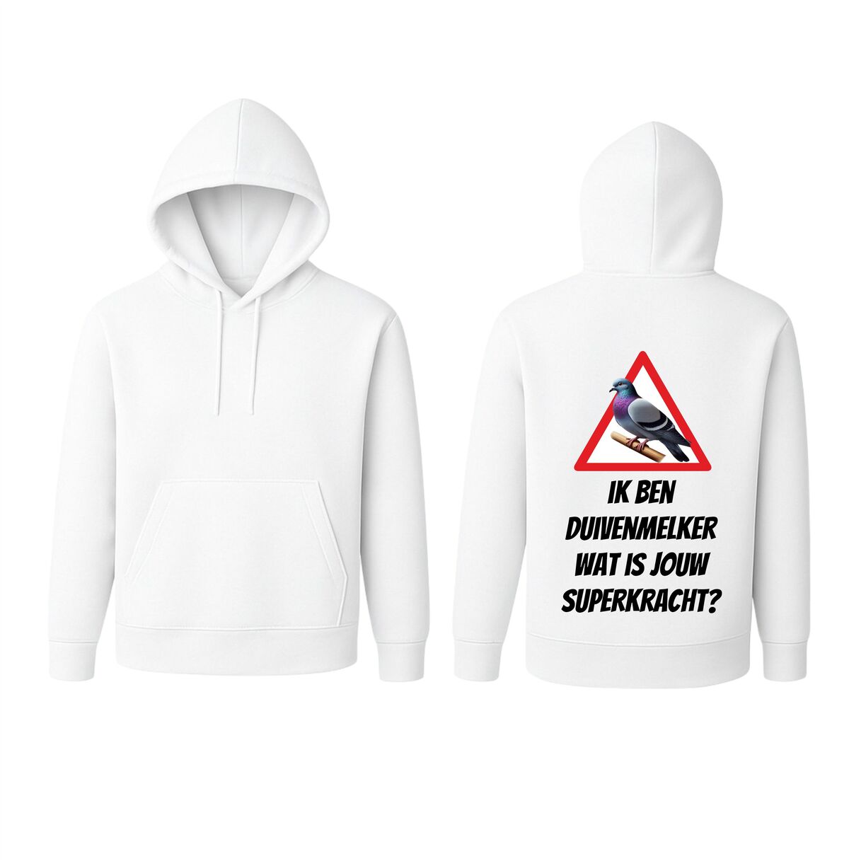 Laat iedereen zien waar jouw passie ligt met deze comfortabele hoodie met de tekst ik ben duivenmelker, wat is jouw superkracht?” en een krachtige afbeelding van een duif. Deze duivenmelker hoodie is speciaal ontworpen voor liefhebbers van postduiven en de duivensport die hun hobby met trots willen dragen. Of je nu vroeg in de ochtend bij het duivenhok staat, naar een vlucht gaat kijken of gewoon een warme trui zoekt voor dagelijks gebruik, deze hoodie combineert karakter met comfort.
