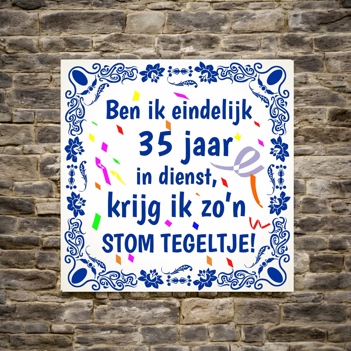 Ben ik eindelijk 35 jaar in dienst krijg ik zo'n stom tegeltje.
