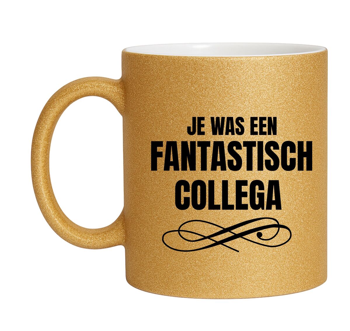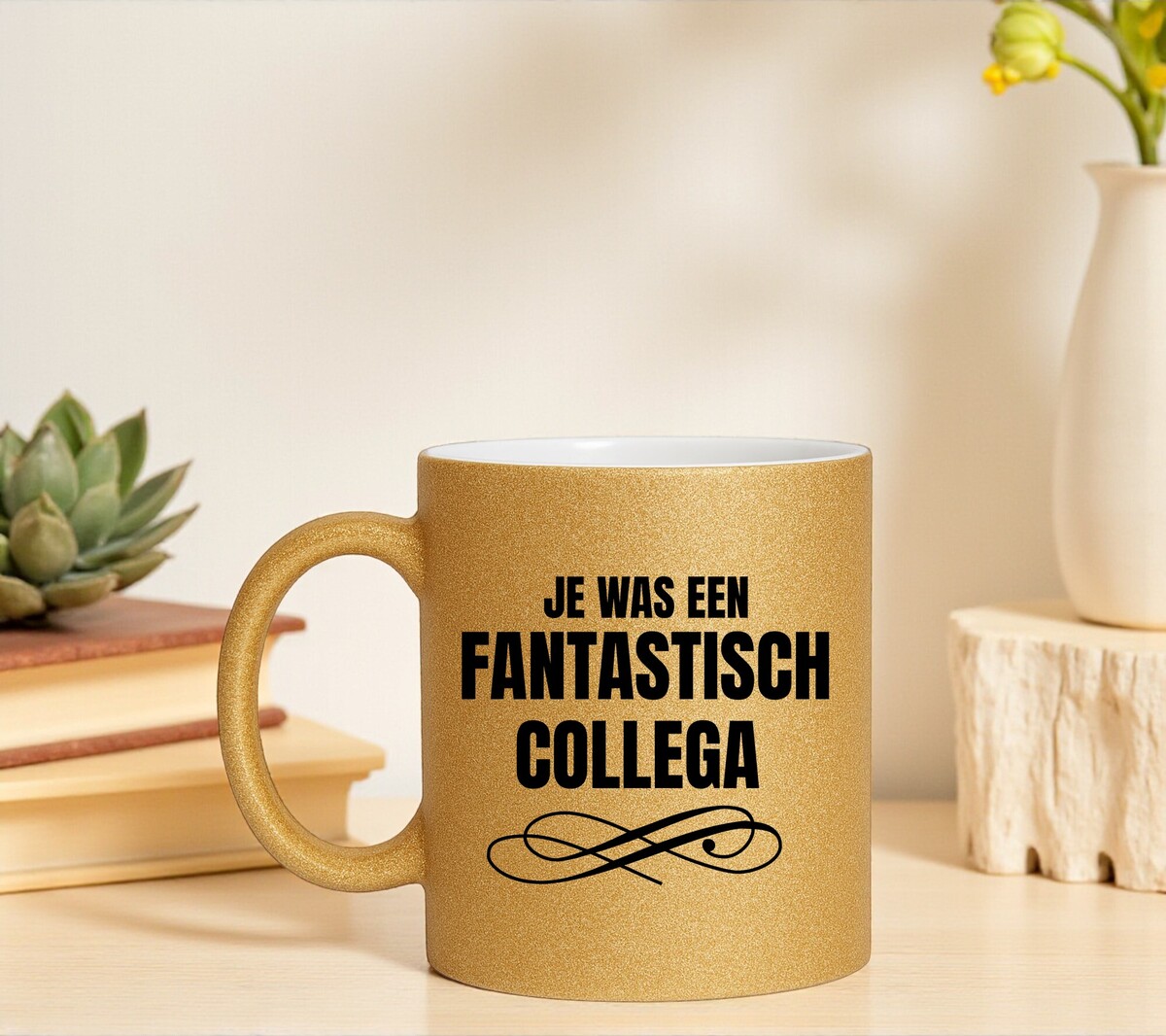 Ben je op zoek naar het perfecte afscheidscadeau voor een collega die je niet zomaar wilt vergeten? Deze prachtige gouden glitter mok met de opdruk “Je was een fantastische collega” is een warme en sprankelende manier om je waardering te tonen.
