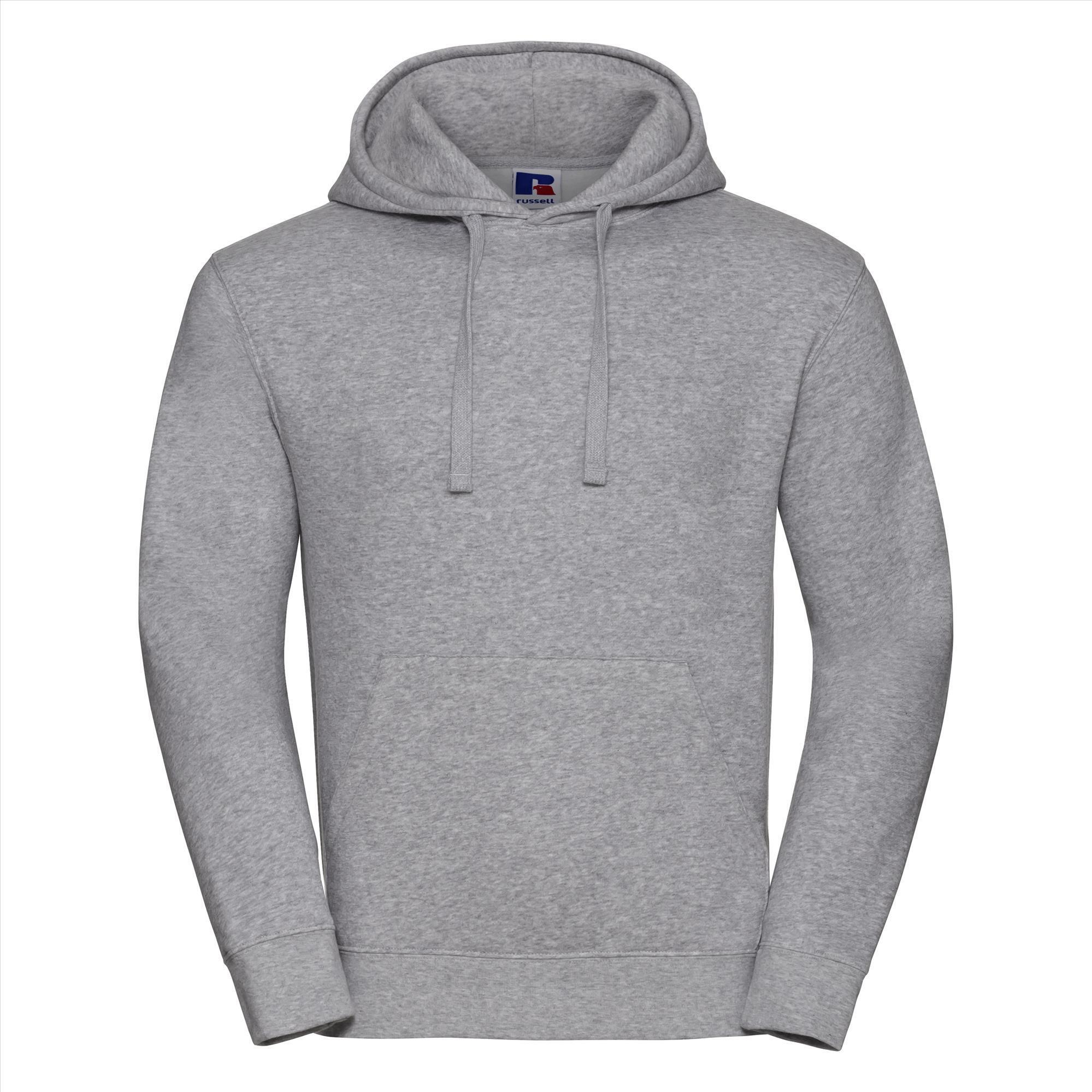 Licht grijze Sweatshirt met dubbellaags capuchon met vlakke en brede koordjes en een recht model voor hedendaagse look. Hele fijne heren sweater met uitstekende pasvorm en met de buitenste laag van 100% katoen voor een betere printbaarheid en trendy kangoeroezak. Is een ideale sweat om casual te dragen maar kan ook zeker op de werkvloer. Merk: Russel. Materiaal: 80% Combed Ringspun Cotton - 20% Polyester Dikte: 280 g/m2. Land van herkomst:Egypt.
