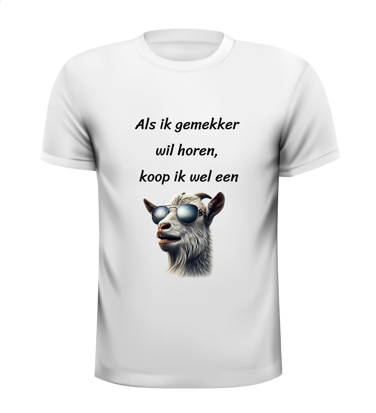Met het 'Als ik gemekker wil horen, dan koop ik wel een geit!' T-shirt laat je op een humoristische manier weten dat je wel klaar bent met al dat geklaag! Dit shirt is perfect voor iedereen die liever geen onnodig gezeur om zich heen heeft. De grappige tekst brengt de boodschap over met een knipoog en zorgt gegarandeerd voor een lach.