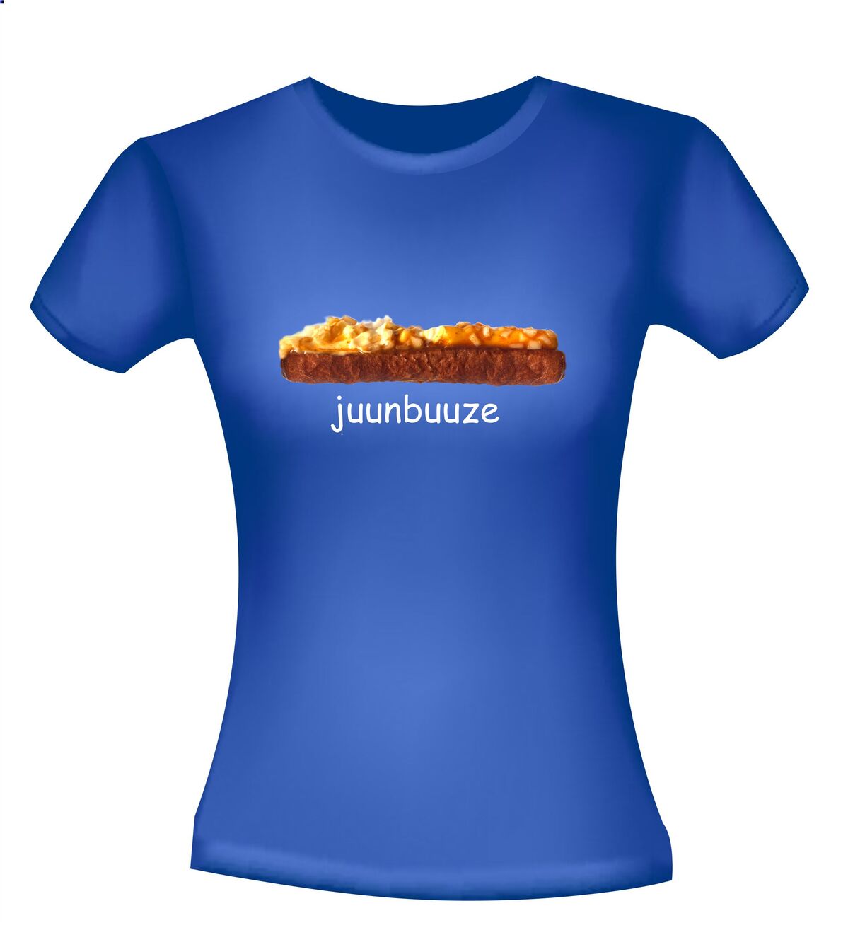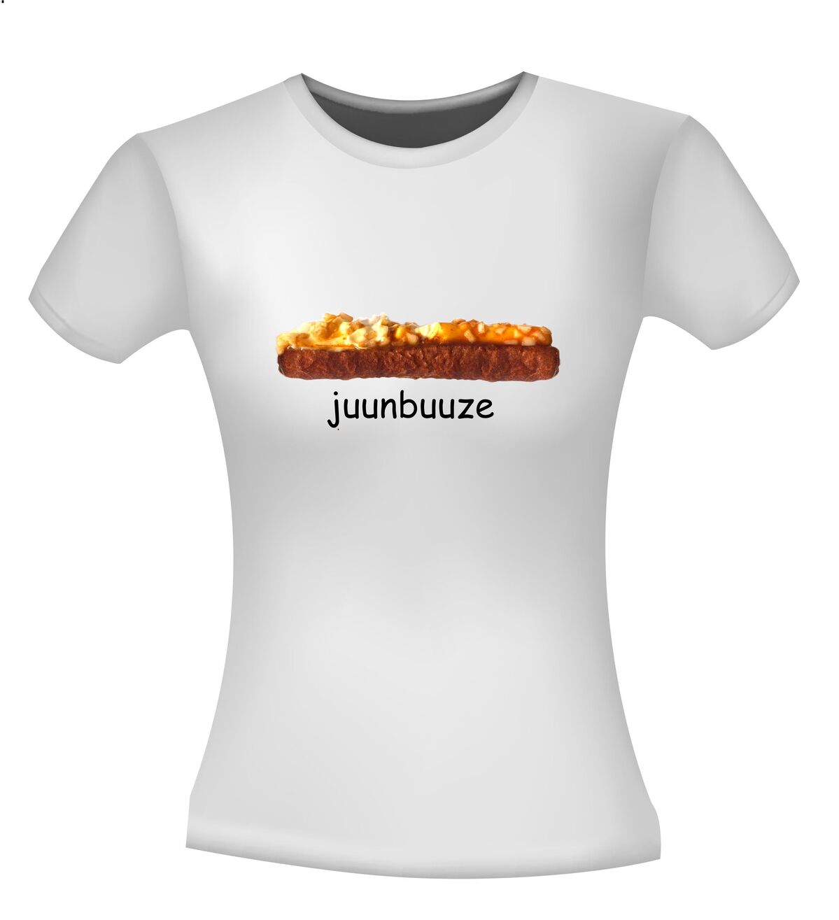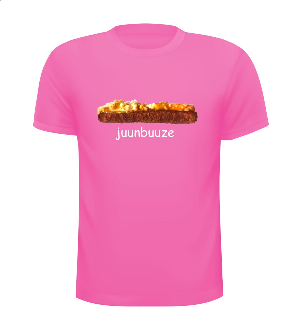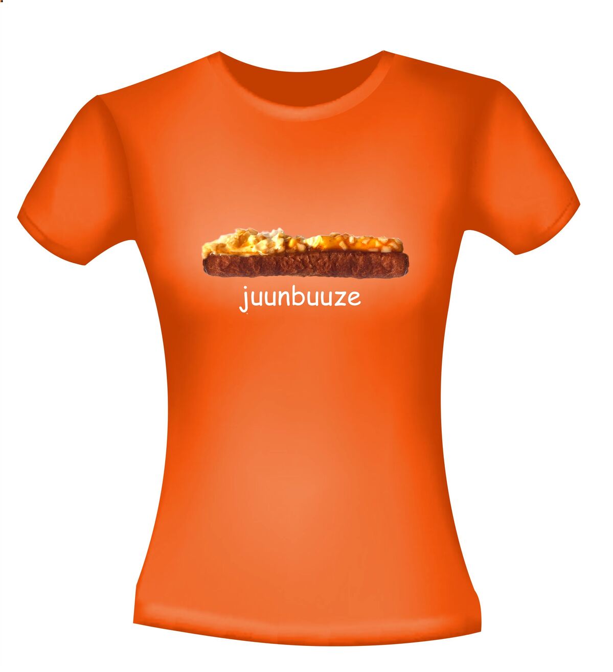 Enig idee wat een juunbuuze is? Dit is het Zeeuwse woord voor frikandel speciaal! Dit grappige T-shirt is voorzien van een juunbuuze!