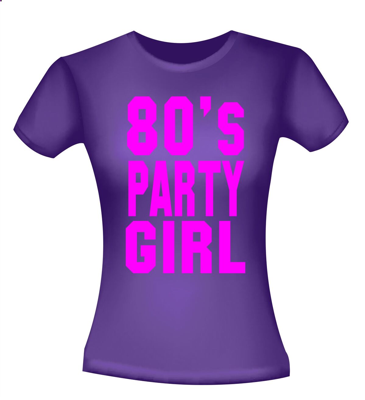 t-shirt korte mouw eighties party girl dames met neon roze letters