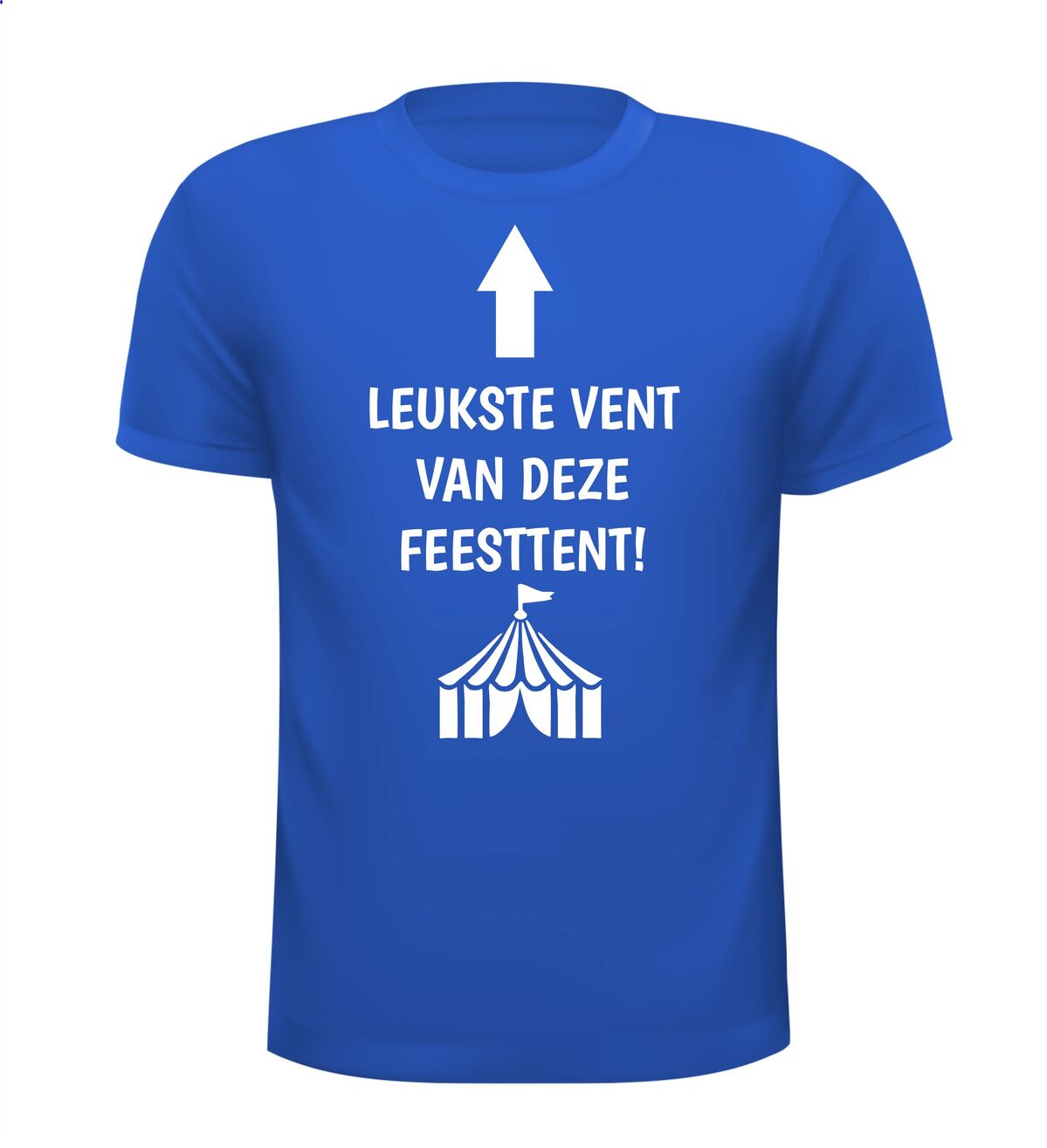 Superleuk T-shirt voor in de feesttent. Op het T-shirt staat de tekst 'Leukste vent van deze feesstent'