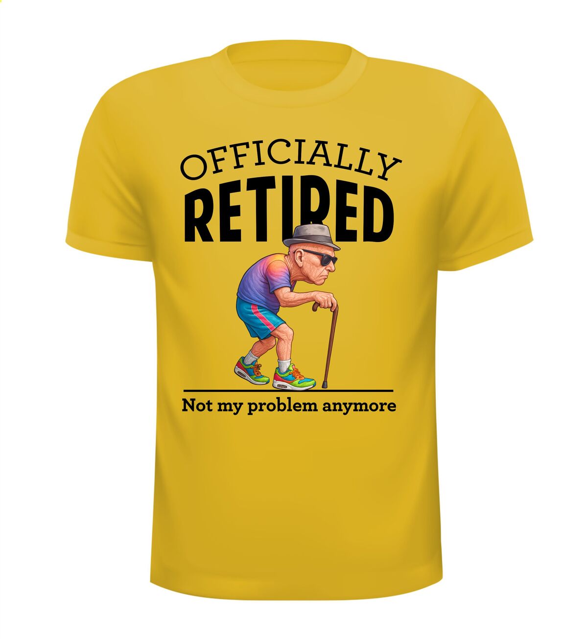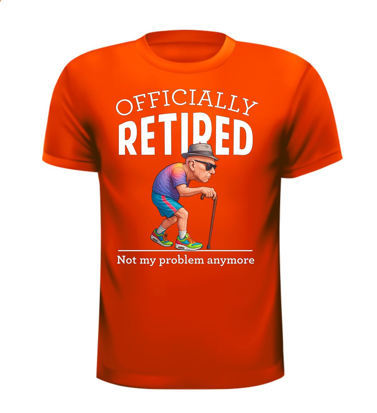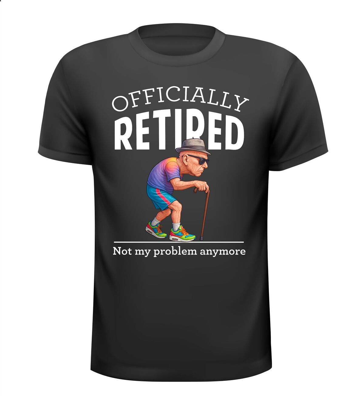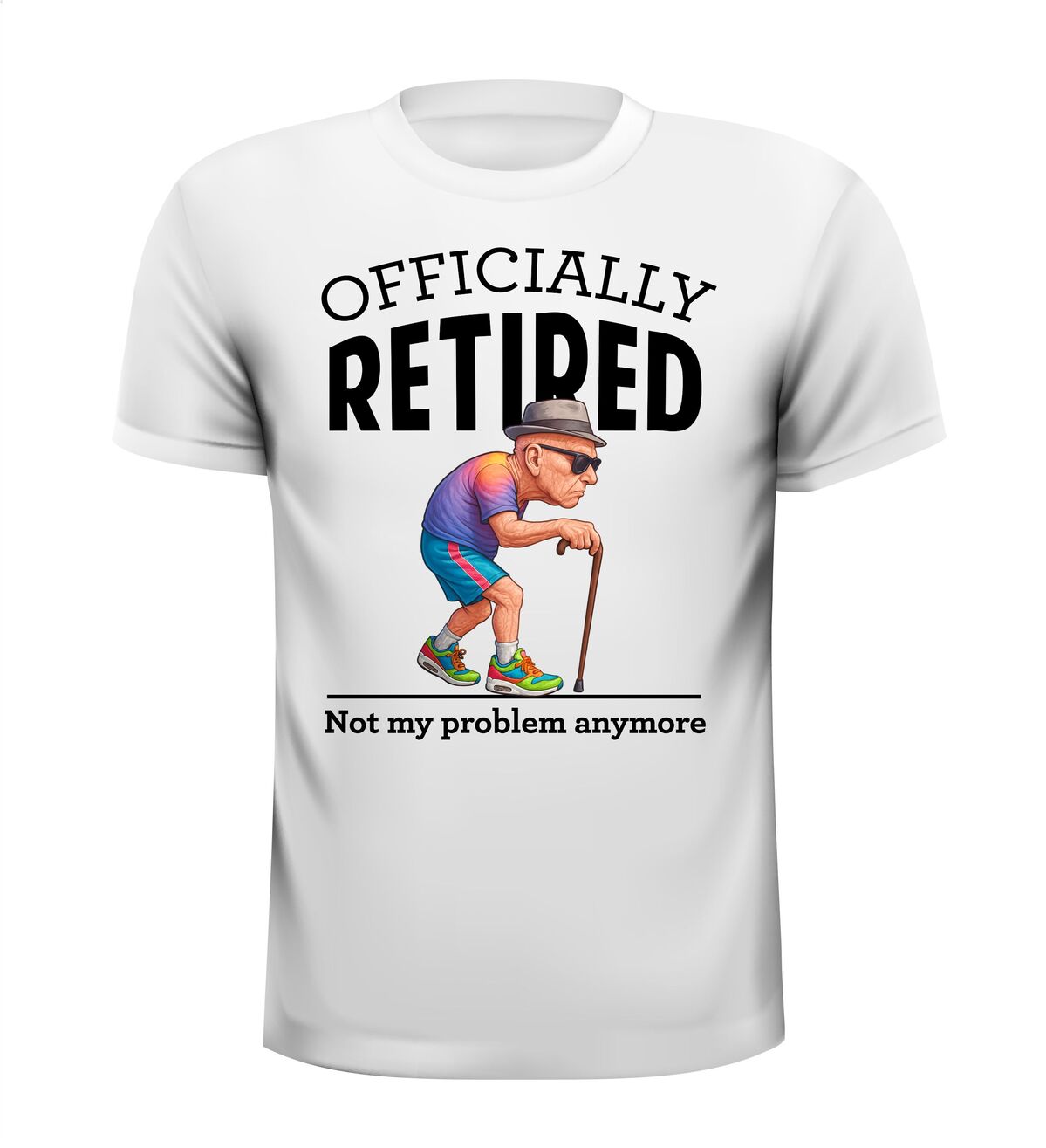 Vier de welverdiende rust van je collega of werknemer met ons unieke shirt! Dit shirt, bedrukt met een grappige afbeelding van een oude man met een wandelstok. de tekst "Officially Retired - Not My Problem Anymore", is het perfecte cadeau voor een gepensioneerde. Het combineert comfort met humor, waardoor het een geweldige keuze is voor elke gelegenheid, of het nu een pensioenfeest is of gewoon een relaxte dag thuis. Dit shirt brengt niet alleen een lach op ieders gezicht, maar herinnert ook aan de vrijheid en zorgeloze dagen van het pensioen. Bestel vandaag nog en geef een cadeau dat zowel stijlvol als grappig is, perfect om de volgende fase van het leven teVier de welverdiende rust van je collega of werknemer met ons unieke shirt! Dit shirt, bedrukt met een grappige afbeelding van een oude man achter een rollator en de tekst "Officially Retired - Not My Problem Anymore", is het perfecte cadeau voor een gepensioneerde. Het combineert comfort met humor, waardoor het een geweldige keuze is voor elke gelegenheid, of het nu een pensioenfeest is of gewoon een relaxte dag thuis. Dit shirt brengt niet alleen een lach op ieders gezicht, maar herinnert ook aan de vrijheid en zorgeloze dagen van het pensioen. Bestel vandaag nog en geef een cadeau dat zowel stijlvol als grappig is, perfect om de volgende fase van het leven te vieren!