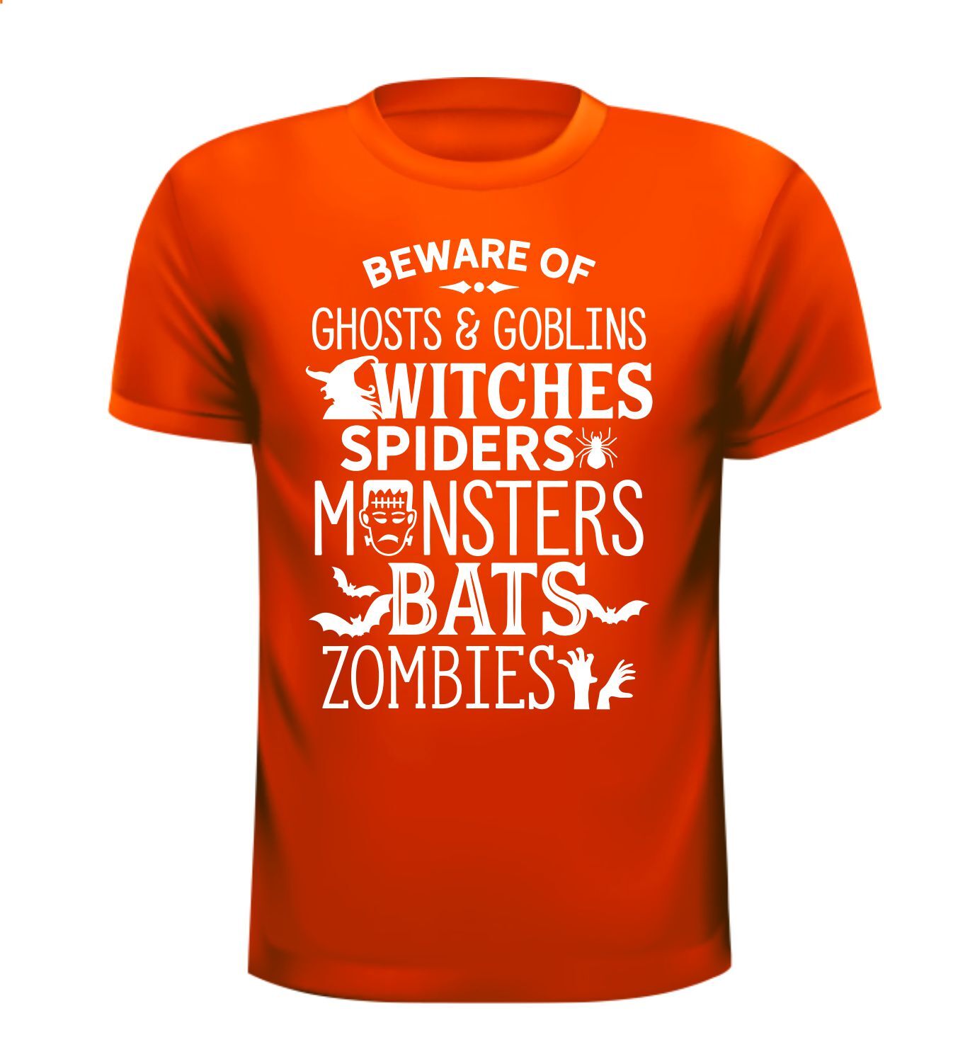 T-shirt super vet Halloween shirtje beware of ghosts gobling witches spiders monsters bats zombies.