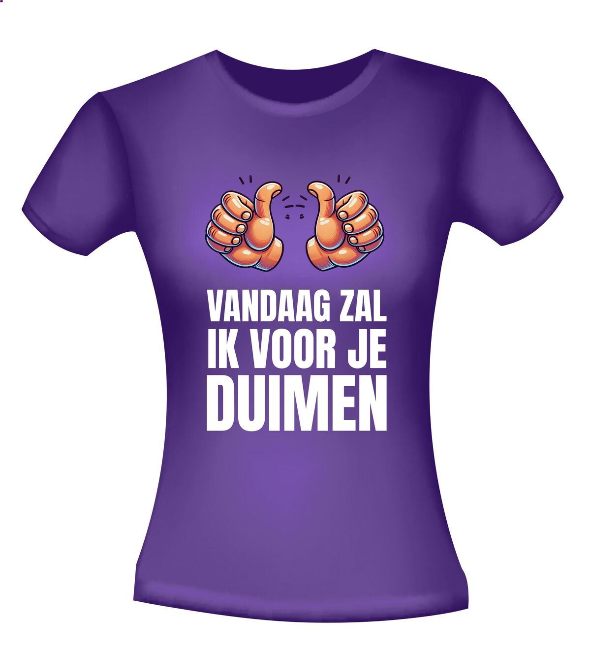 T-shirt met de tekst 'Vandaag zal ik voor je duimen'.