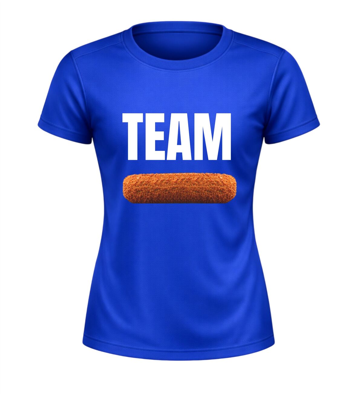 Dit team kroket shirt is dé ideale keuze voor teams die tijdens een toernooi willen opvallen met humor en originaliteit. Met de opvallende tekst team kroket”en een smakelijke kroket afbeelding is dit teamshirt perfect voor vriendengroepen, sportteams en collega’s die samen deelnemen aan een voetbaltoernooi, zaalvoetbaltoernooi, hockeytoernooi of bedrijventoernooi. Het ontwerp zorgt direct voor herkenning, gezelligheid en een goede dosis teamspirit.