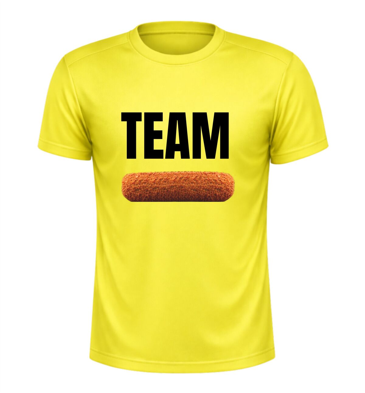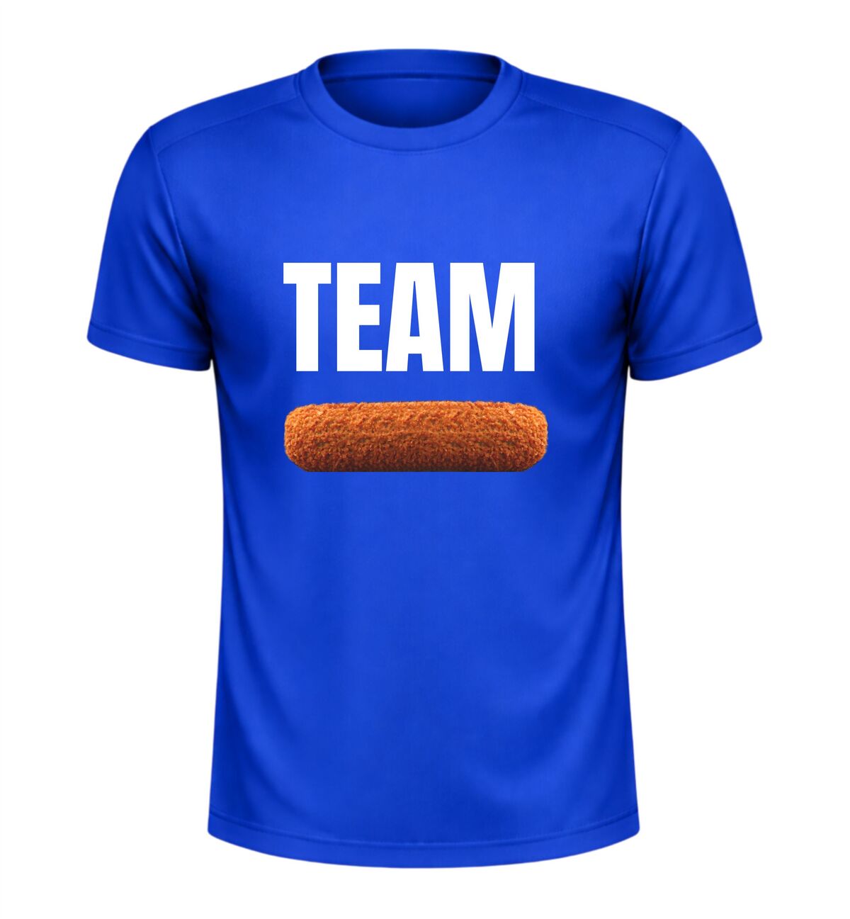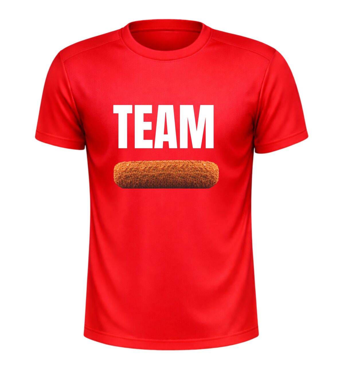Ben je op zoek naar een grappig team shirt voor een toernooi, originele teamkleding met bedrukking of een uniek Team Kroket T-shirt met afbeelding? Dan is dit shirt precies wat je nodig hebt. Perfect als opvallend toernooishirt en gegarandeerd goed voor lachende gezichten op én naast het veld.