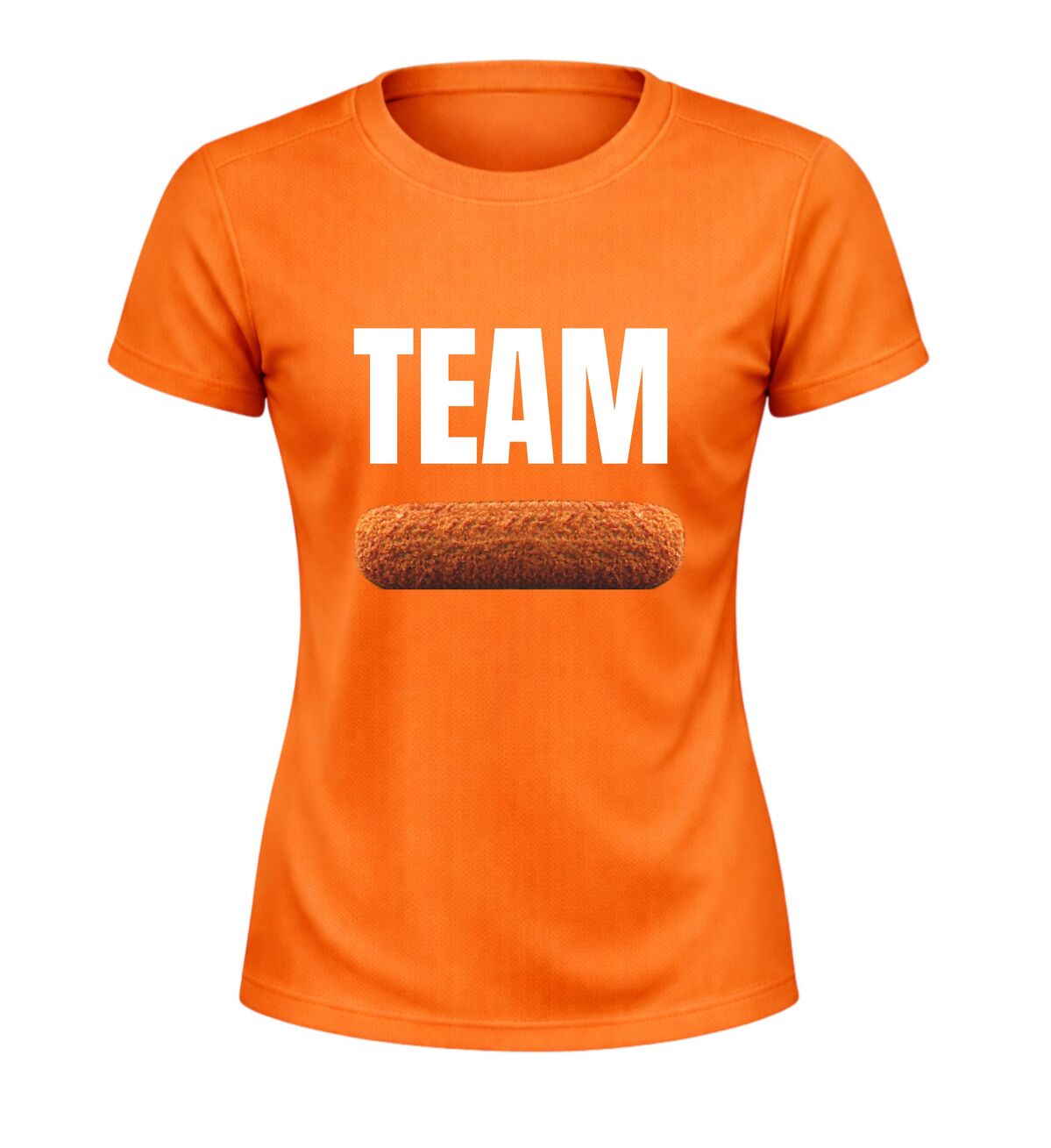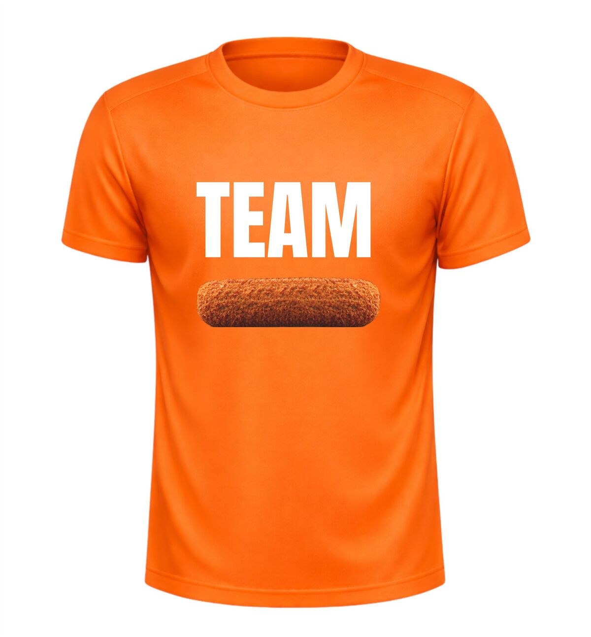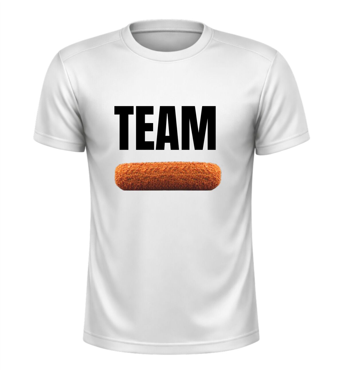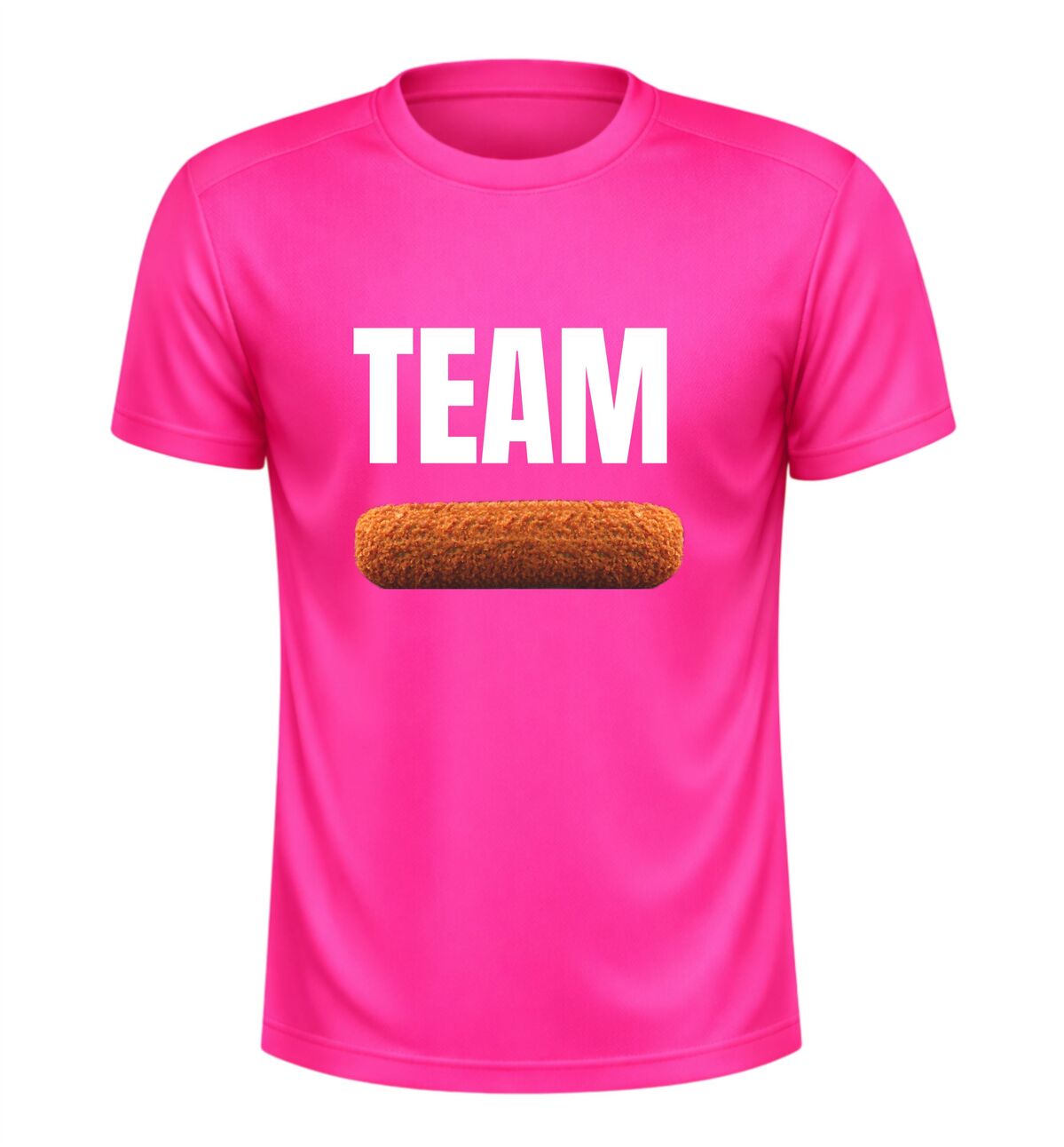 Ben je op zoek naar een grappig team shirt voor een toernooi, originele teamkleding met bedrukking of een uniek Team Kroket T-shirt met afbeelding? Dan is dit shirt precies wat je nodig hebt. Perfect als opvallend toernooishirt en gegarandeerd goed voor lachende gezichten op én naast het veld.