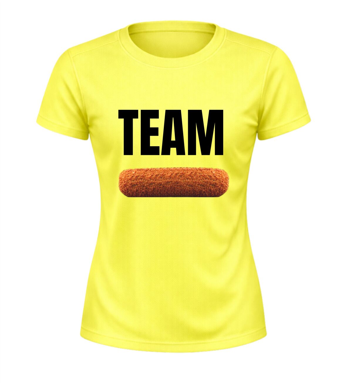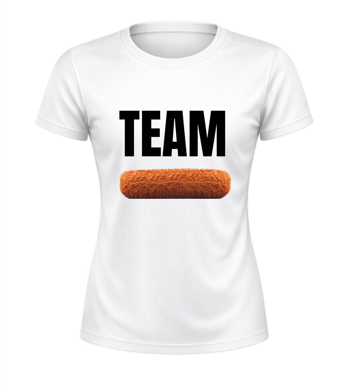 Het shirt is comfortabel en geschikt om te dragen tijdens sportieve activiteiten, maar ook ideaal als ludiek team T-shirt voor een teamuitje of evenement. Dankzij de duidelijke print en het grappige snack-thema is dit een populair en origineel team shirt voor toernooien waar plezier minstens zo belangrijk is als winnen. Teamkleding met een knipoog zorgt niet alleen voor eenheid, maar maakt jullie team ook onvergetelijk voor tegenstanders en supporters.