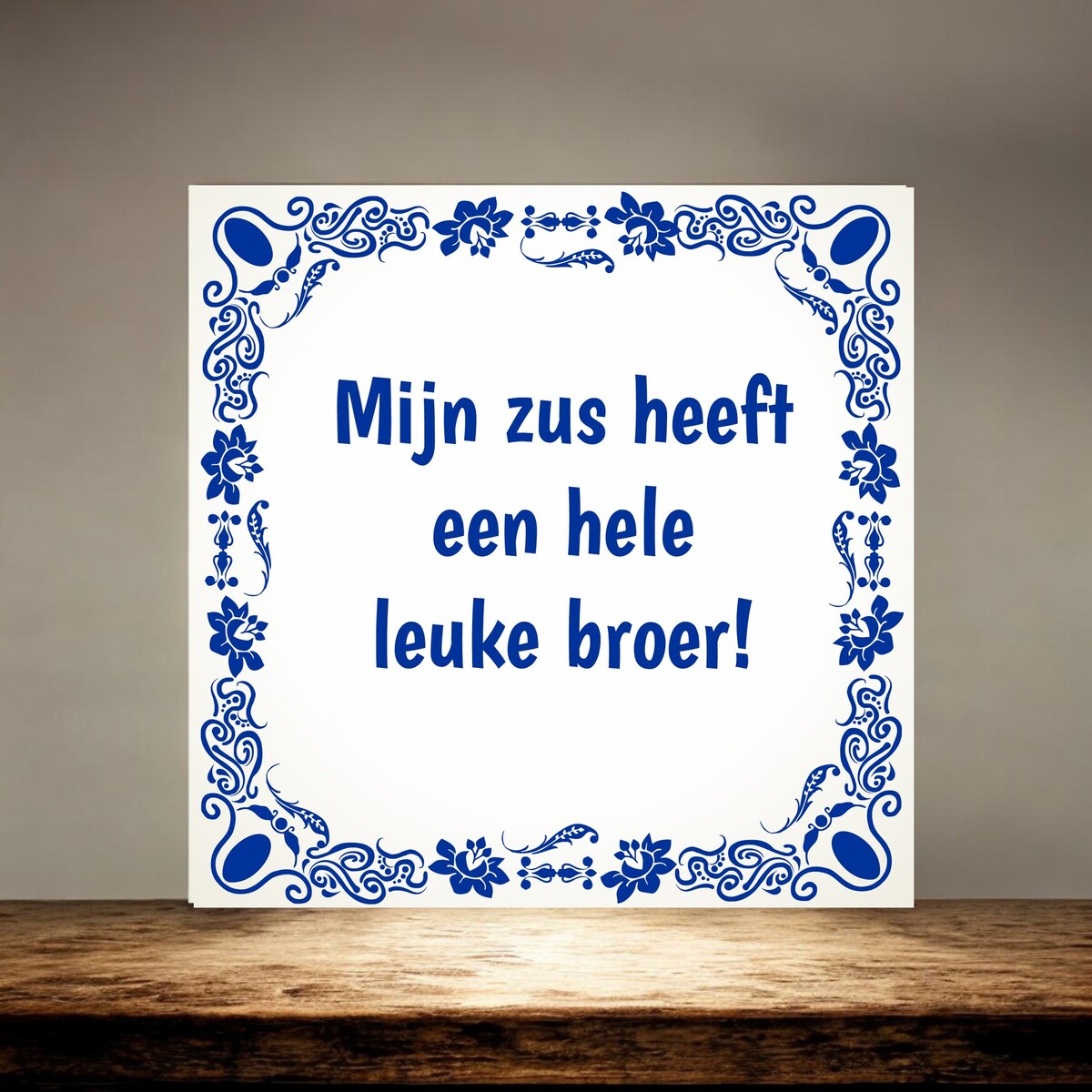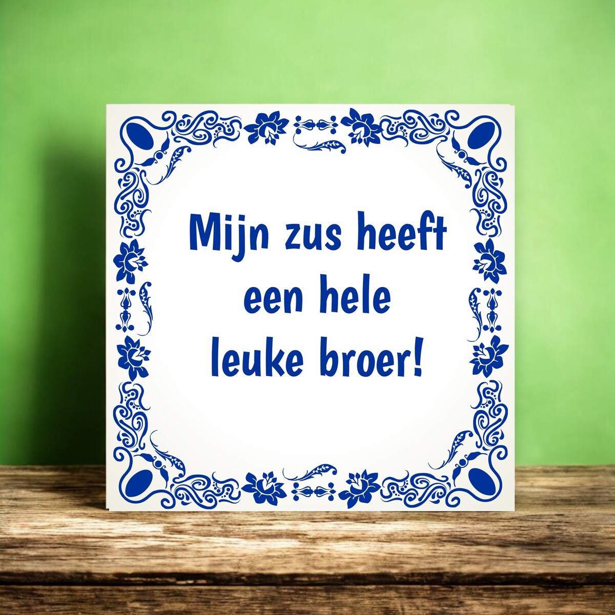 Grappig tegeltje mijn zus heeft een hele leuke broer! Formaat van het tegeltje is 15cm x 15cm.