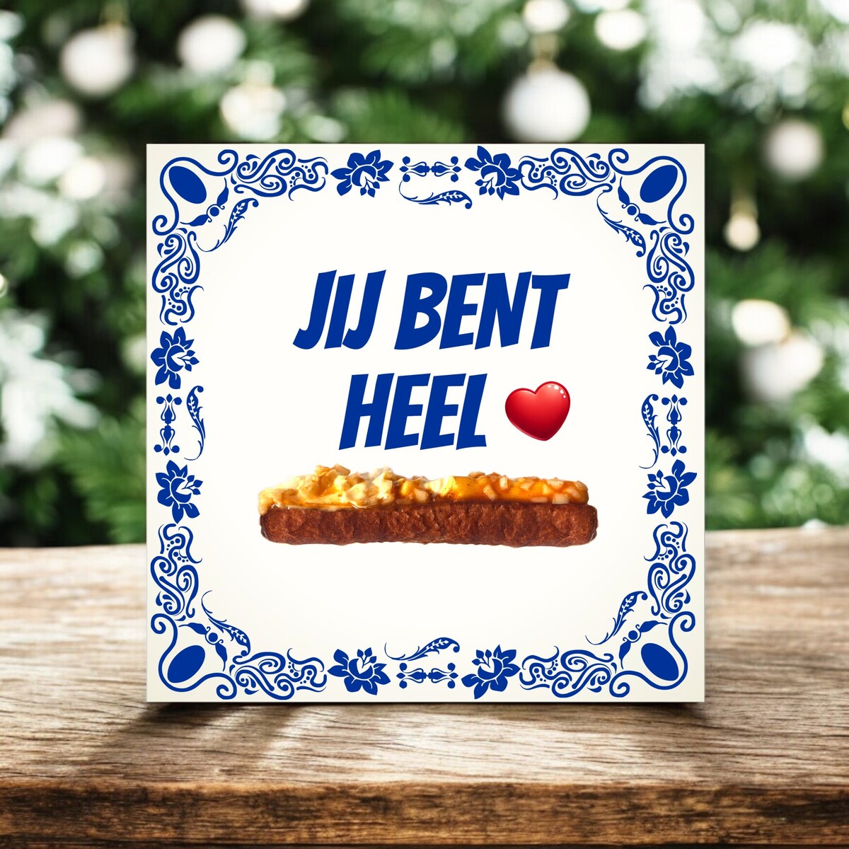 Een heel lief tegeltje voor een speciaal iemand. Op het tegeltje staat de tekst jij bent heel speciaal. Het woord speciaal is vervangen door een frikandel speciaal afbeeelding.